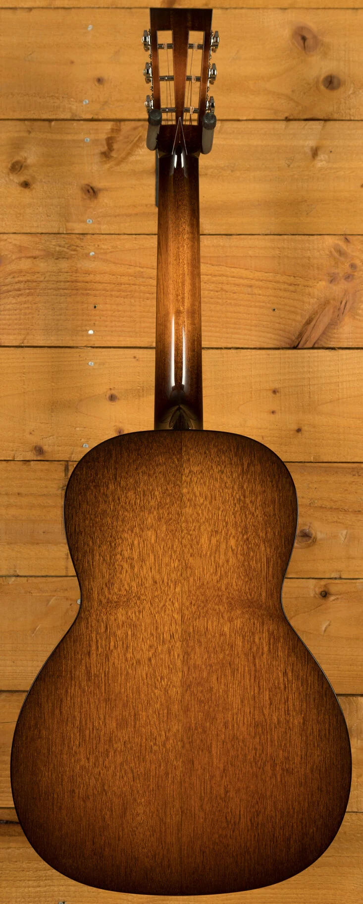 Body & Neck: Full Honduran mahogany body with a Honduran mahogany top in Full Body Sunburst finish, paired with a Honduran mahogany neck featuring a Modified V profile and an ebony fingerboard with dot inlays, offering a 24 7/8" scale length.