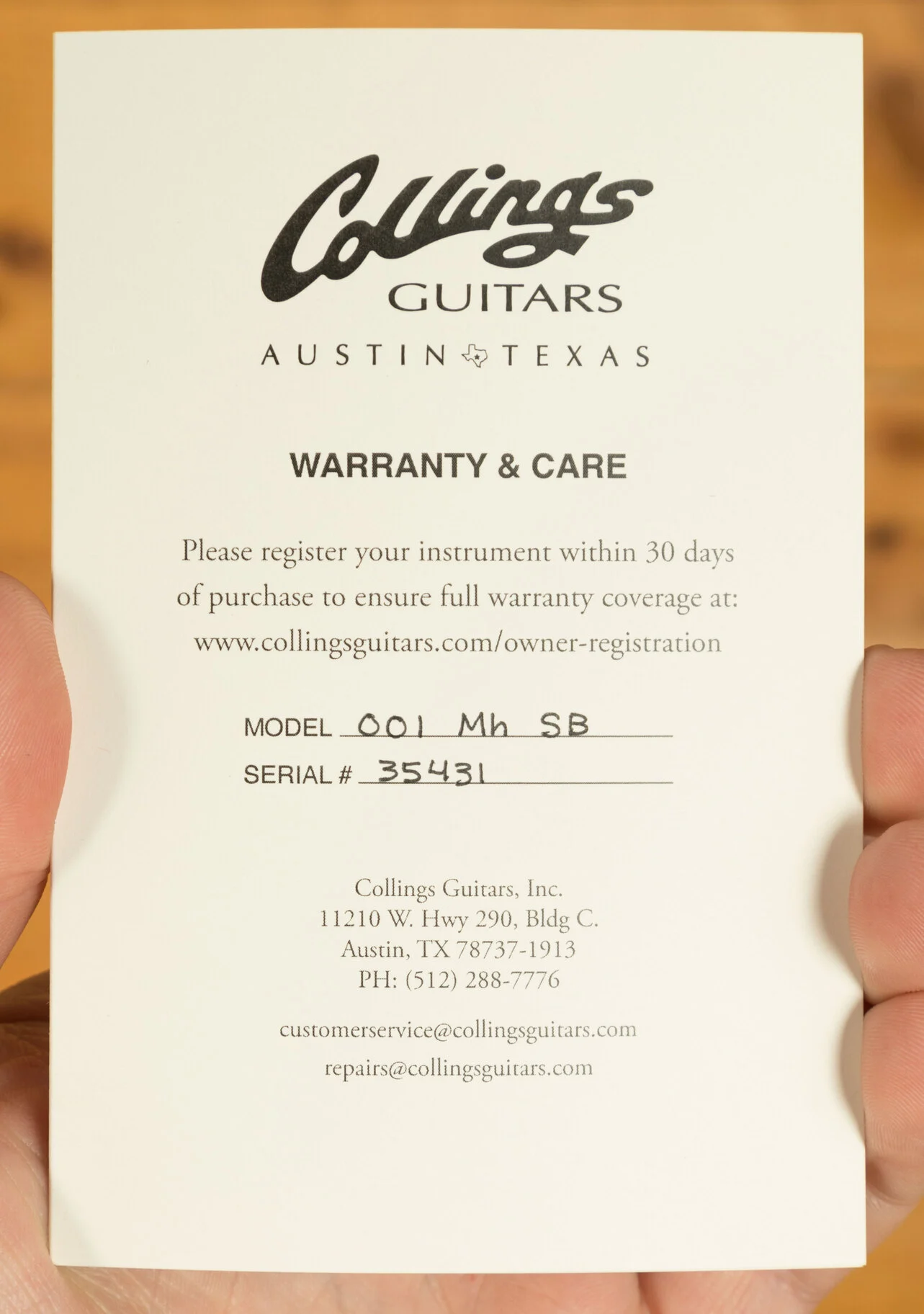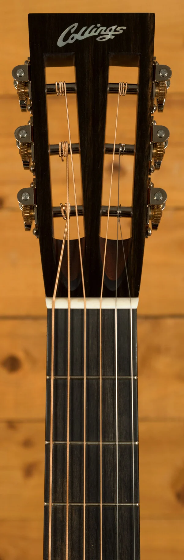 This Collings 001 features a full Honduran mahogany construction, including a Honduran mahogany top, back, sides, and neck, finished in a Full Body Sunburst that highlights the wood’s rich grain. The ebony fingerboard, paired with a 12-fret design and a slotted headstock, offers a 24 7/8" scale length and a Modified V neck profile for a comfortable, vintage-inspired playing experience. The pyramid bridge and tortoise binding add to its classic aesthetic, making it a versatile choice for fingerstyle or vocal accompaniment.