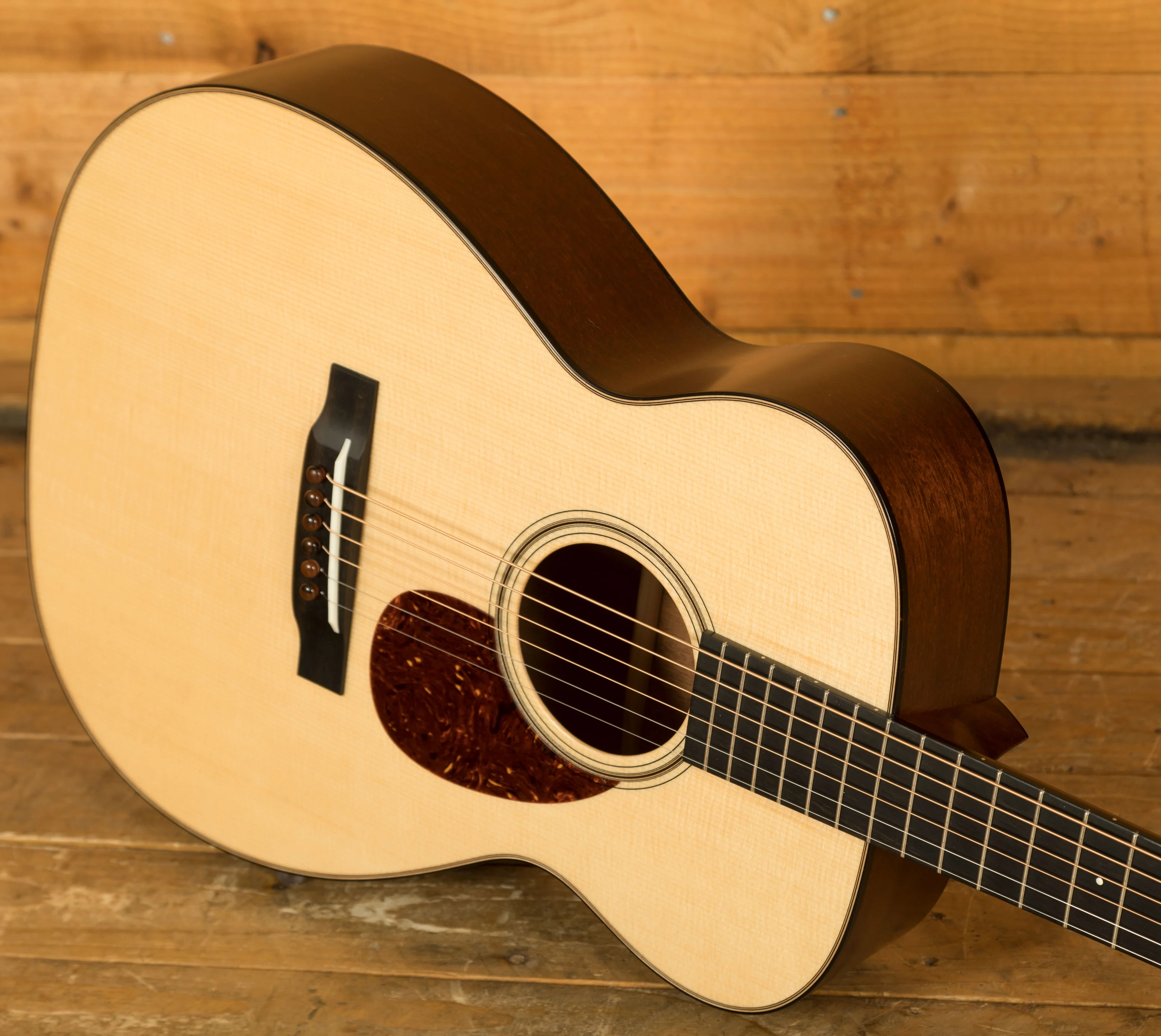 The mahogany neck, carved to a Modified V profile, is paired with an ebony fingerboard featuring a 14" to 26" compound radius and a 1 3/4" bone nut, providing a comfortable, vintage-inspired playing experience. The pyramid-style ebony bridge ensures excellent tone transfer and sustain, complemented by nickel Waverly tuners for precise tuning stability. Professionally set up by our expert luthiers at Peach Guitars, it's ready to play straight out of its original hardshell case.