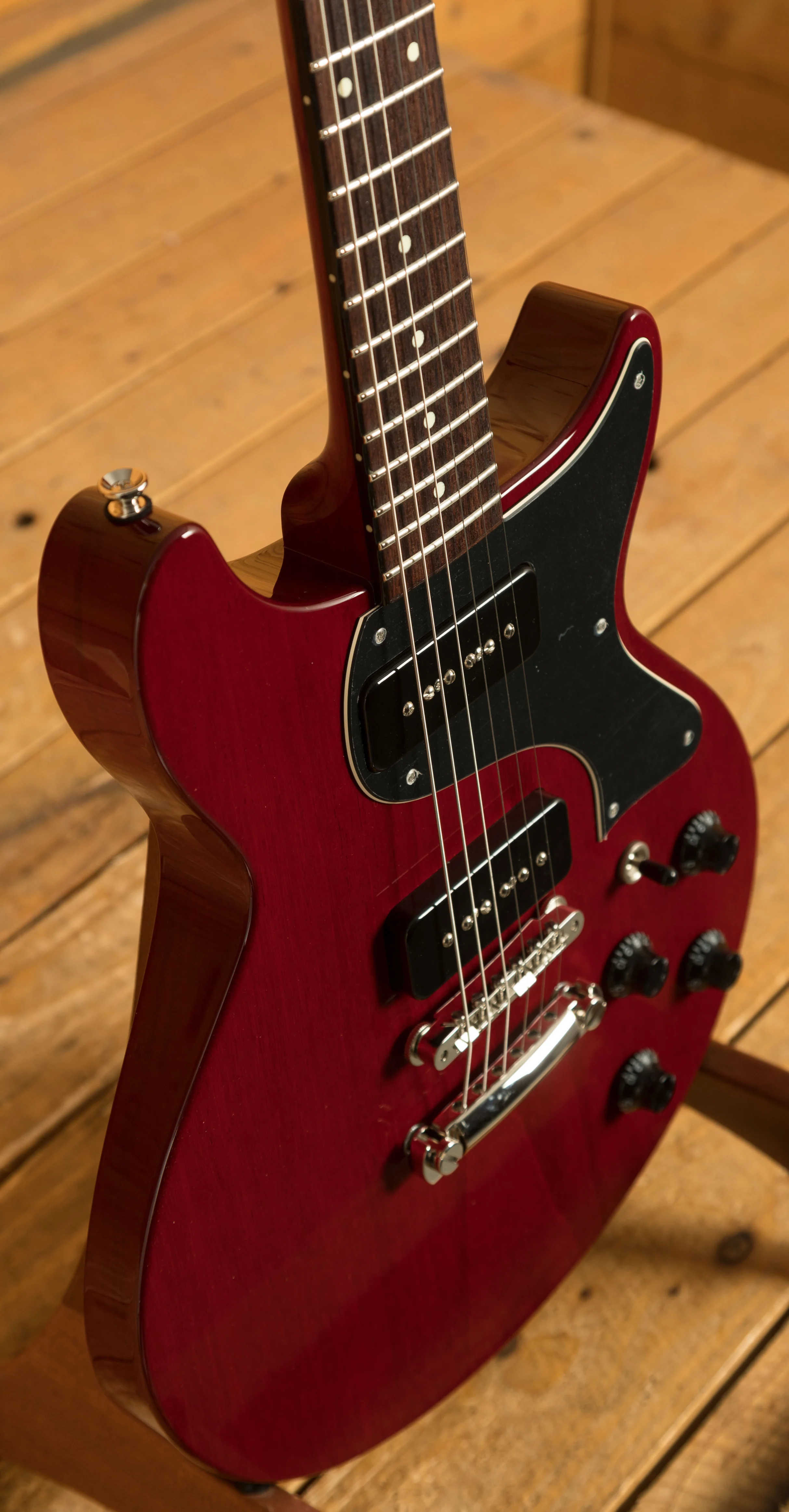 The Honduran Mahogany neck features a Rosewood fingerboard, with a 24.7/8" scale length and a 12" radius, it's comfortable and precise. With a super rockin' pair of Lollar P-90s, the 290 is a tonal powerhouse, delivering a wide variation of rich and detailed tones, the 290 is a real players guitar.