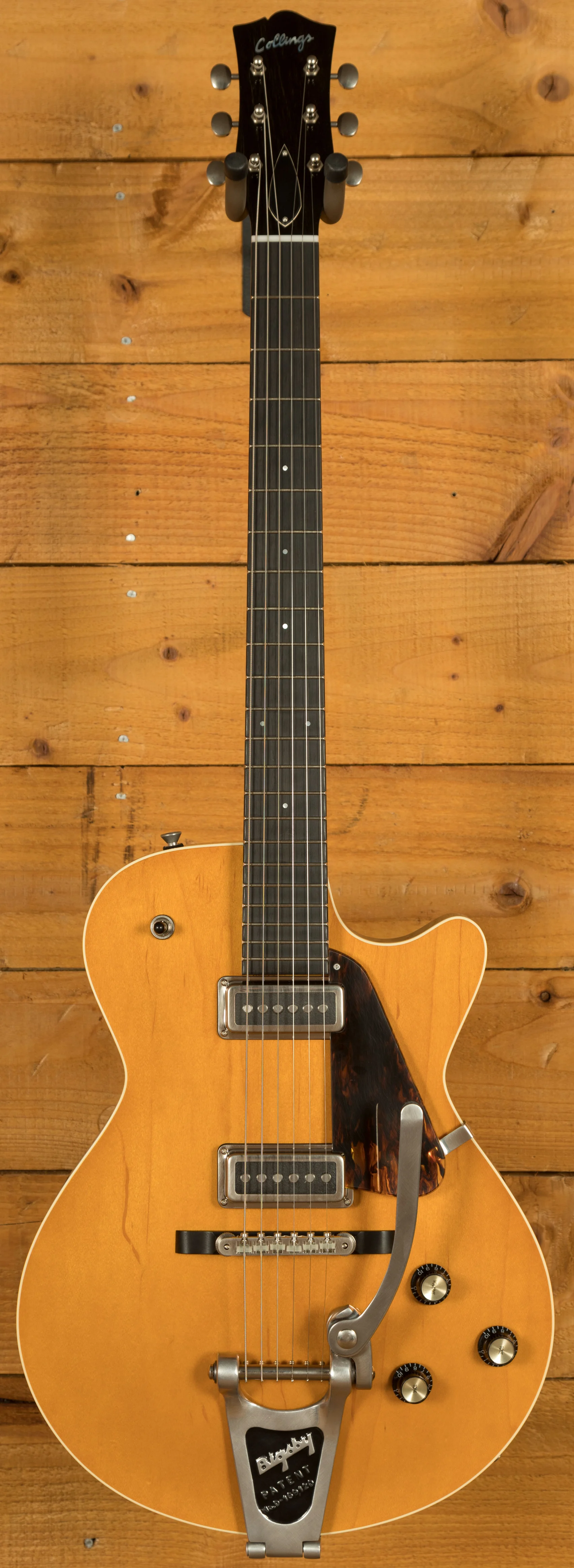 Collings decided to team up with esteemed pickup maker "Ron Ellis" to offer a truly elevated experience with this signature model. Those seeking the power of a higher wound pickup with the fidelity and clarity of a true vintage single coil will not be disappointed. This set sounds incredible. Thanks to the Bigsby B3 Tailpiece you have a stable and comfortable playing platform, perfect for all those vibrato pieces.