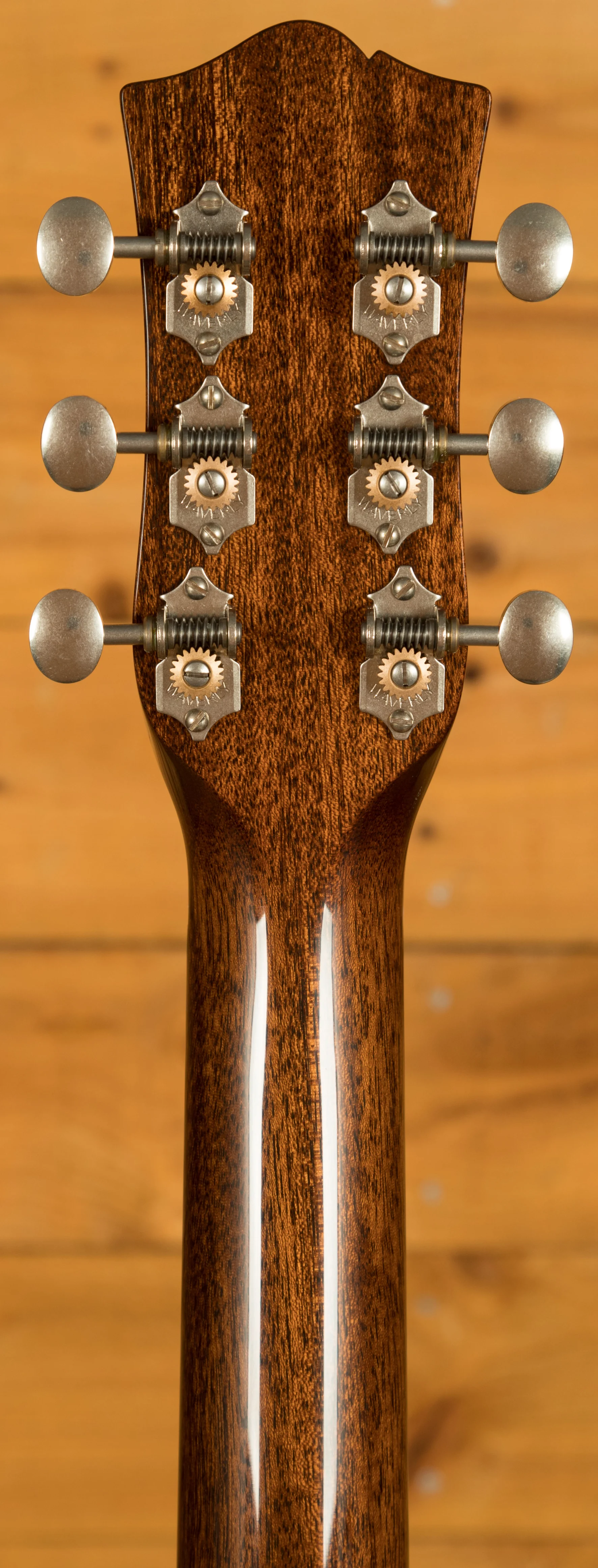 The Honduran Mahogany neck features a custom neck profile unlike no other seen on a Collings guitar. To achieve the comfortable, accessible feel desired, a custom neck shape was created which incorporates Julian's preferences for a symmetrical design and narrower fingerboard in the upper fret range, along with a C/V hybrid profile that measures .850" at the 1st fret and .955" at the 12th. It also includes a 12" Radius, 24 7/8" Scale Length, Medium Nickel-Silver Frets and Graduated Pearl Dot Inlays.