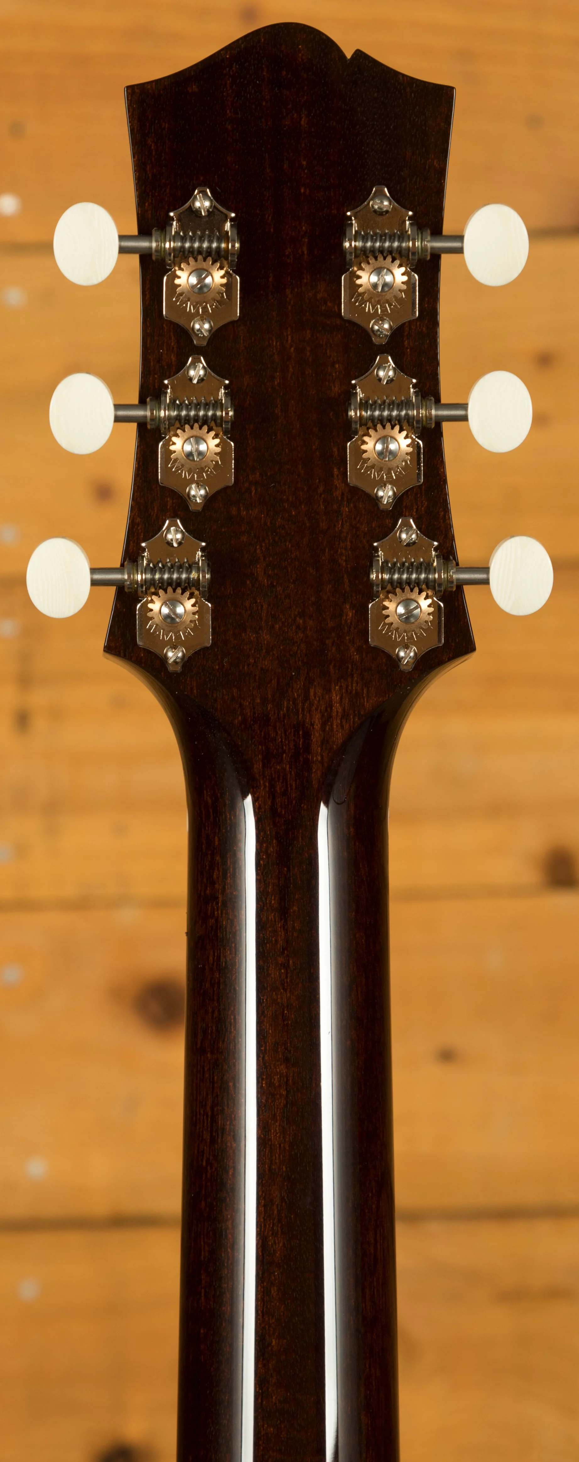 A Honduran Mahogany neck boasts an Indian Rosewood fingerboard with a CJ-45 profile which has a full C-Shape which is substantial in terms of both feel and in its contributions to tone. It also features a 24 7/8" scale length. 12" Radius, Medium Nickel frets and of course Mother of Pearl long dot inlays. It is supremely comfortable underhand, it's an absolute joy to play, beautifully well balanced and incredibly high quality.