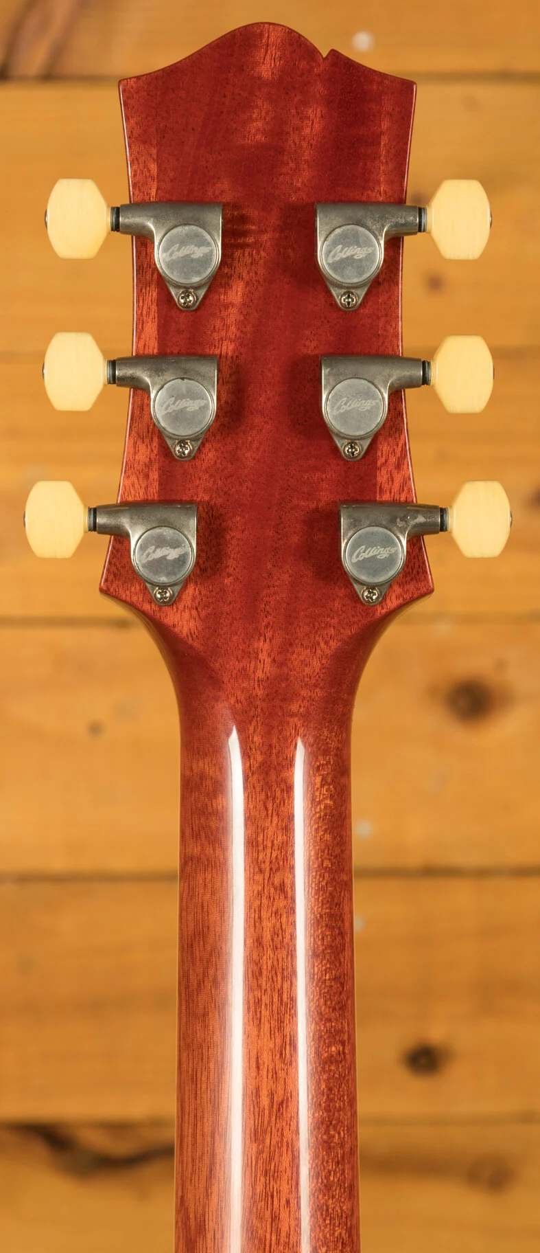 With a Laminate Maple body with a Maple centre block, finished in the Collings Faded Cherry, this is a serious guitar with a seriously cool look. Each laminate model is constructed using a combination of different density woods that are rich in tone, precise in response and deliver that premier Collings vibe. Equipped with a Kluson ABR-1 bridge and stop tailpiece, this guitar offers incredible intonation and a beautifully smooth playing action.