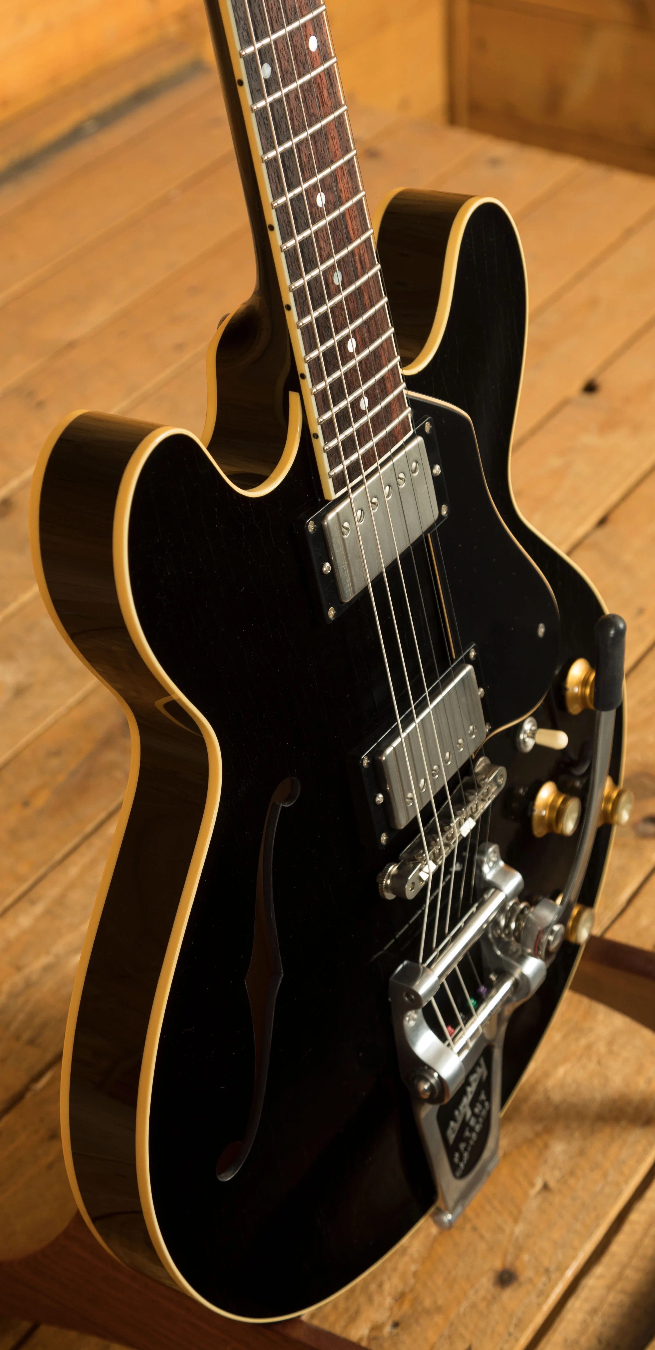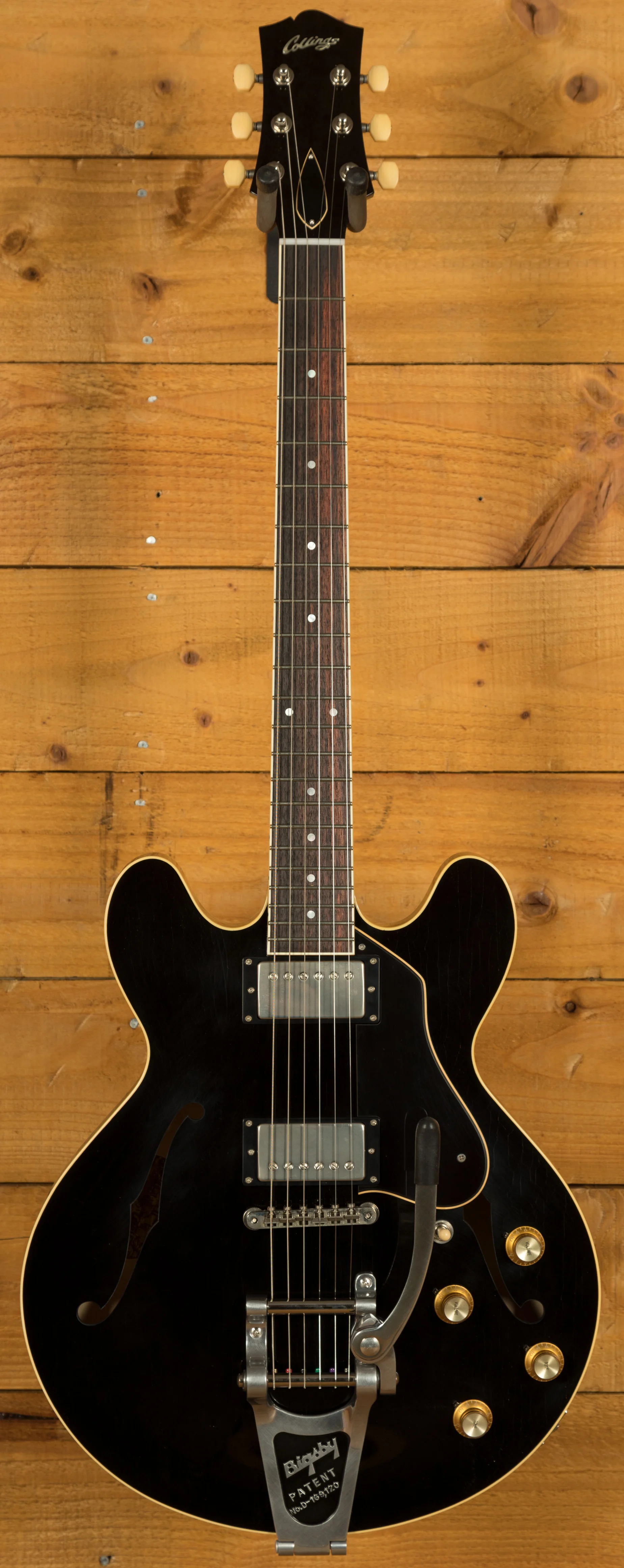 With a Laminate Maple body with a Maple centre block, finished in Jet Black, this is a serious guitar with a seriously cool look. Each laminate model is constructed using a combination of different density woods that are rich in tone, precise in response and deliver that premier Collings vibe. Equipped with a bigsby bridge, this guitar offers incredible intonation and a beautifully smooth playing action.