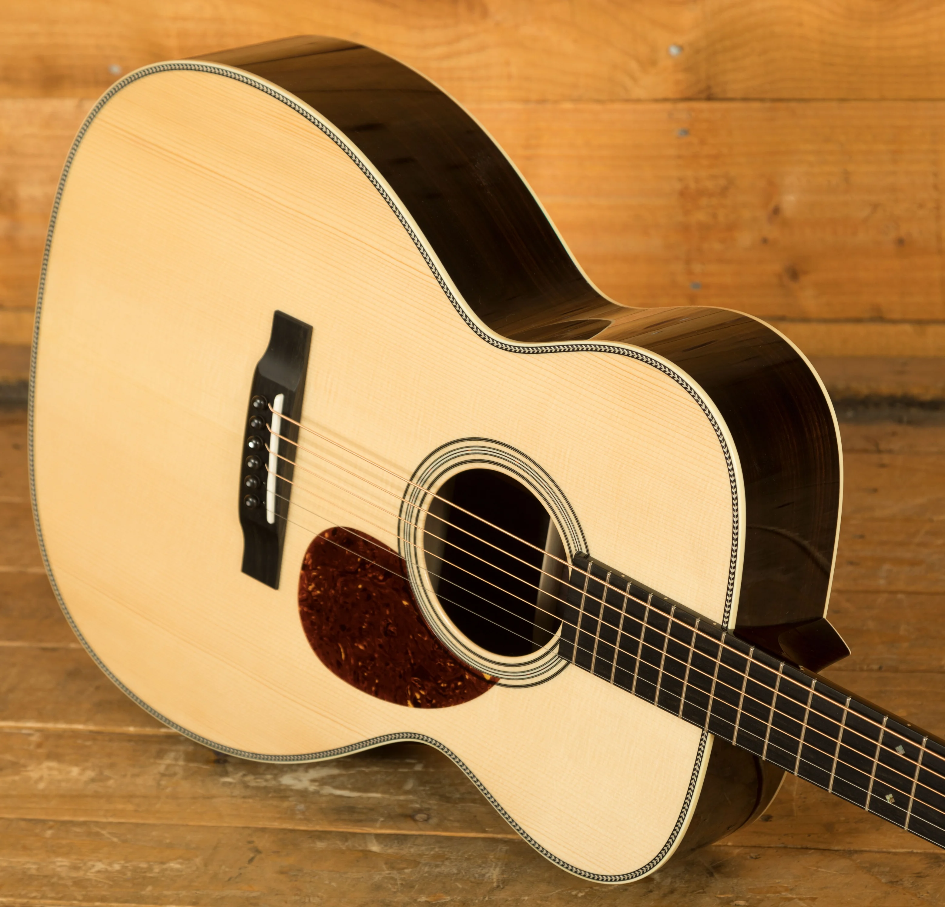 With a crisp Adirondack Spruce top with East Indian Rosewood back and sides, the OM2H delivers depth, warmth and tonal clarity. The OM stands for "Orchestra Model" now over 80 years since the body shape was first designed it still remains a firm favourite amongst fingerstyle players and flatpickers alike.