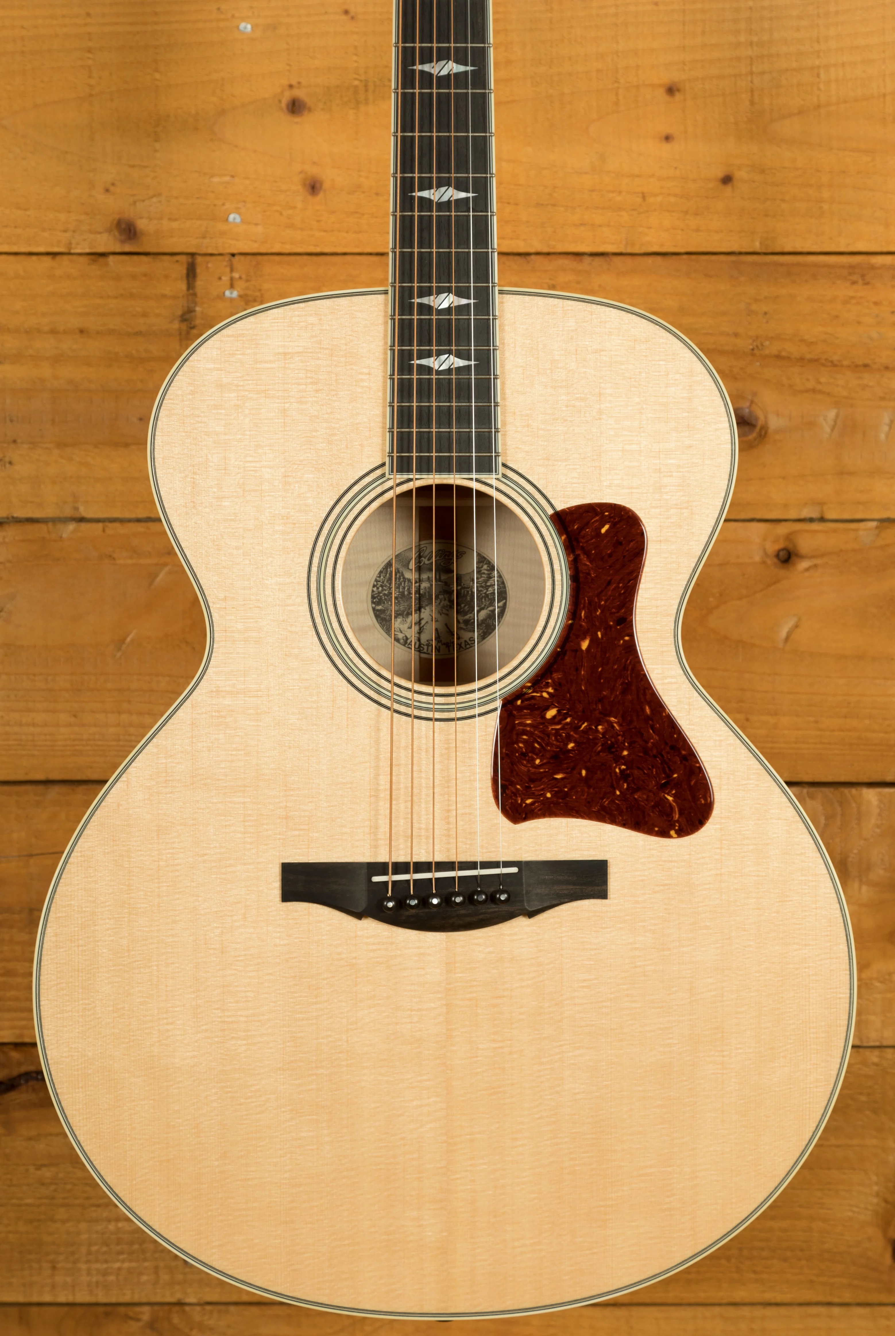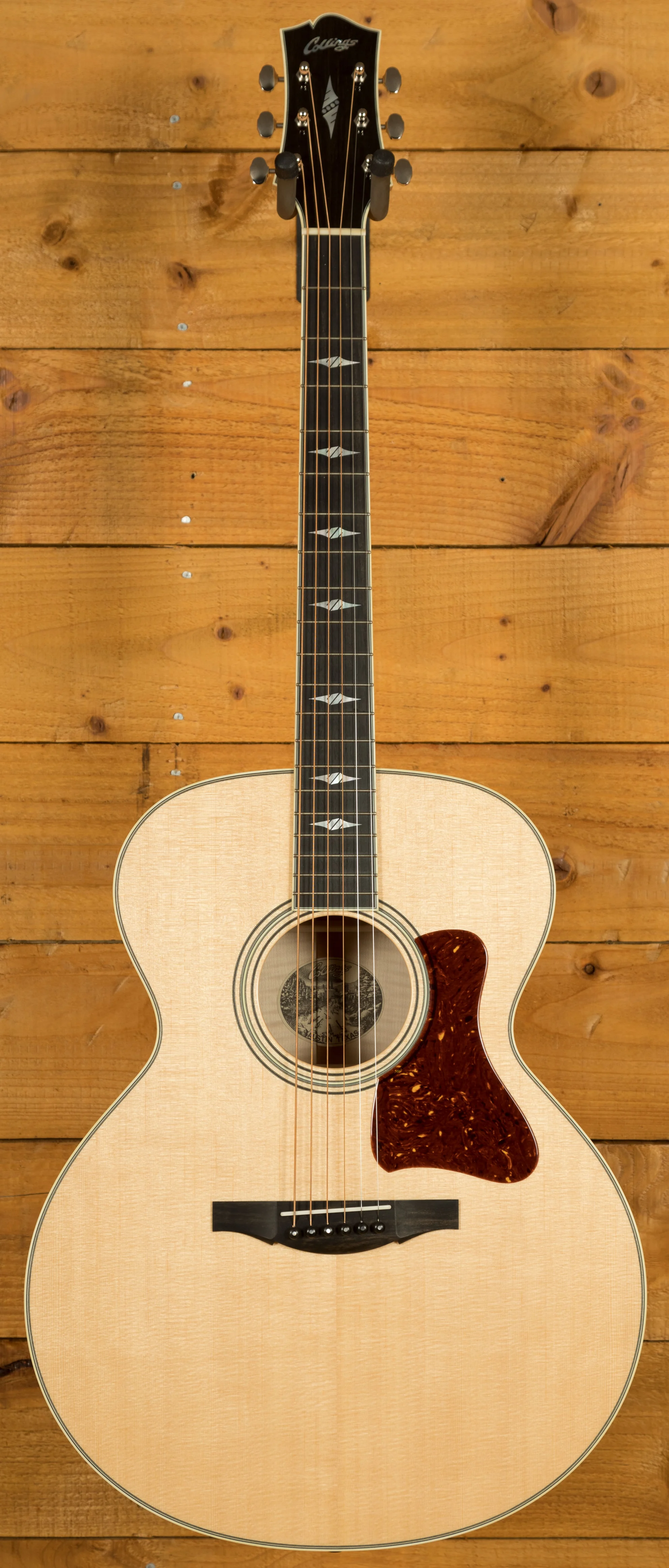 The Collings SJ (small jumbo) instruments have a narrow waist and wide lower bout which provides articulate bass with an enhanced presence in the midrange and treble. Basically: excellent overall tonal balance.