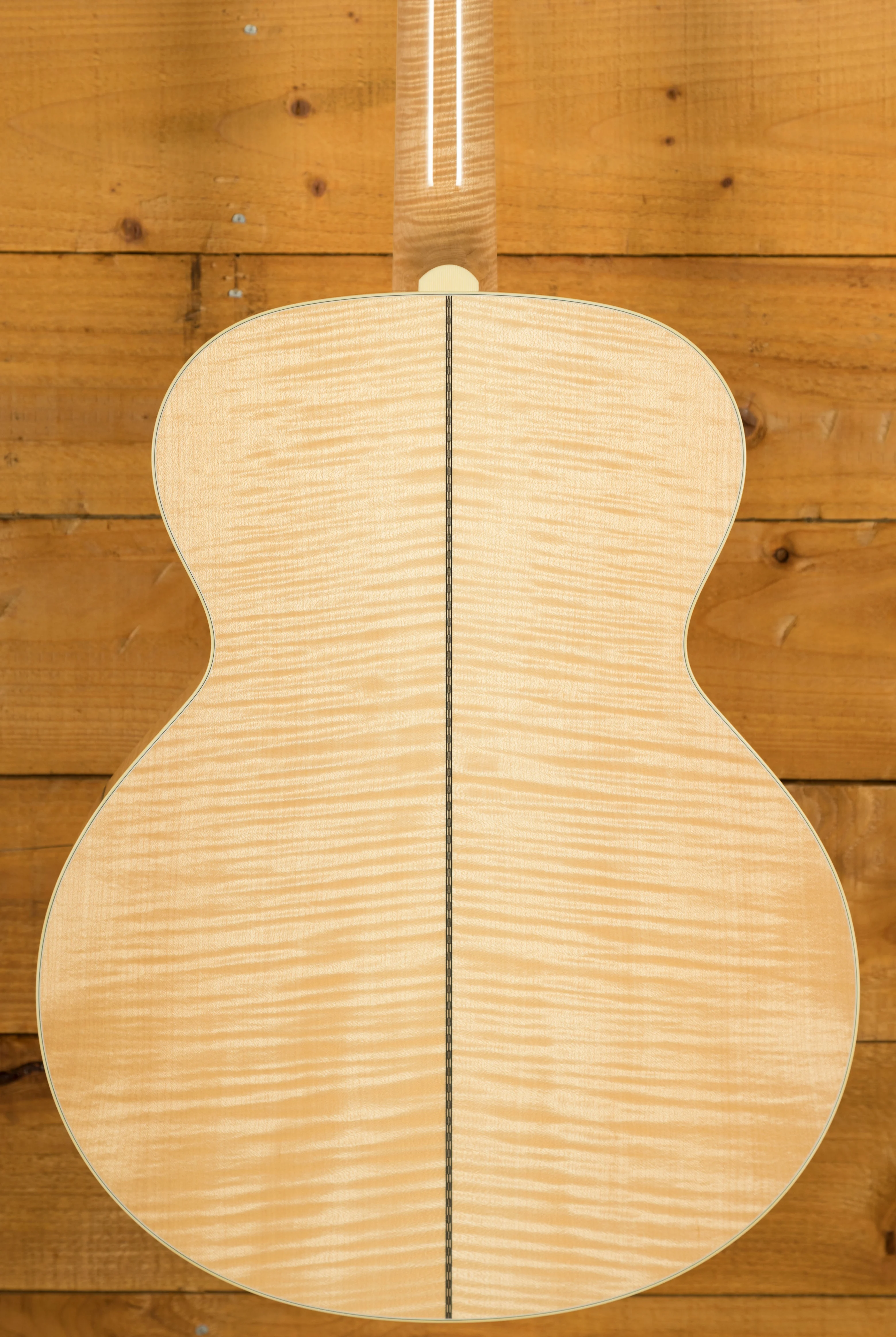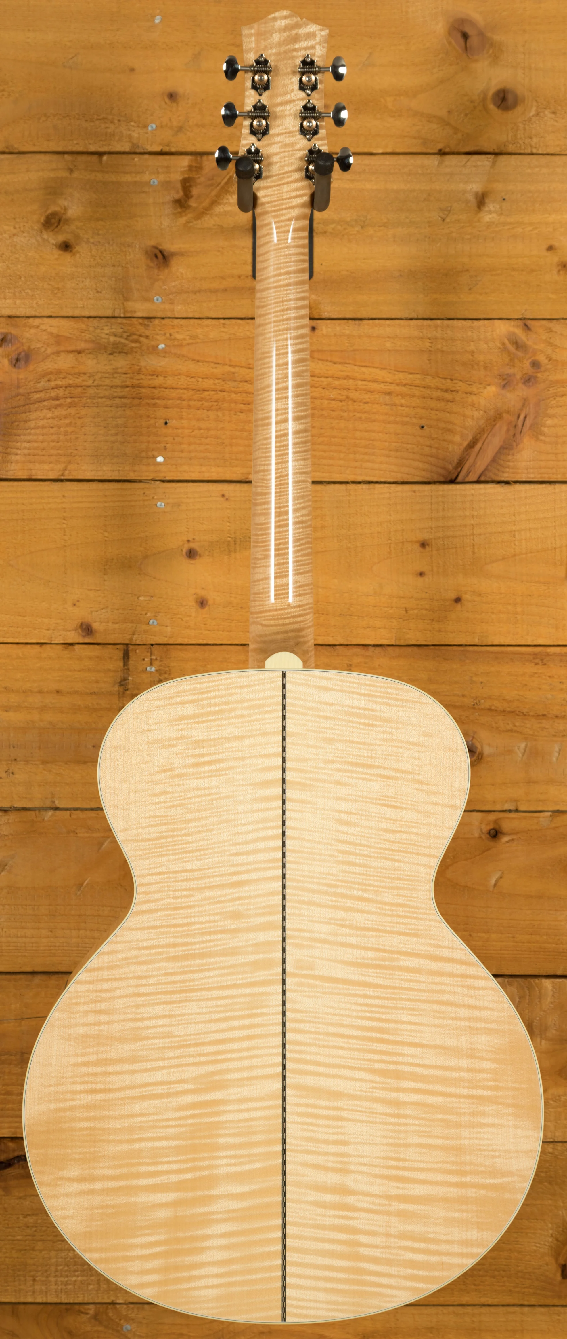 The Collings SJ is constructed of all solid woods that are acquired, acclimated, and hand selected by master luthiers at their shop. It has a premium flame maple back and sides with a black/white maple backstrip as standard.