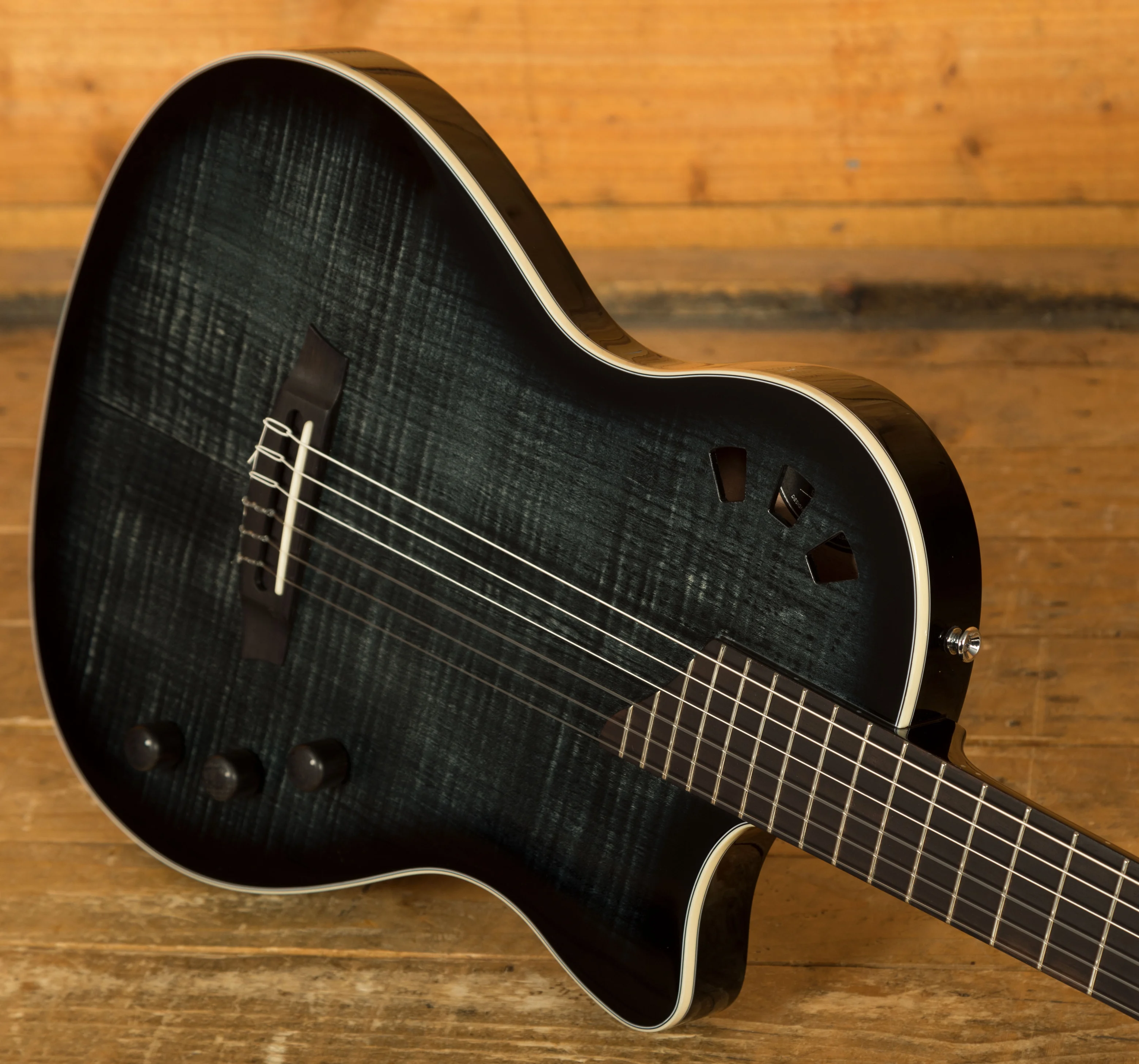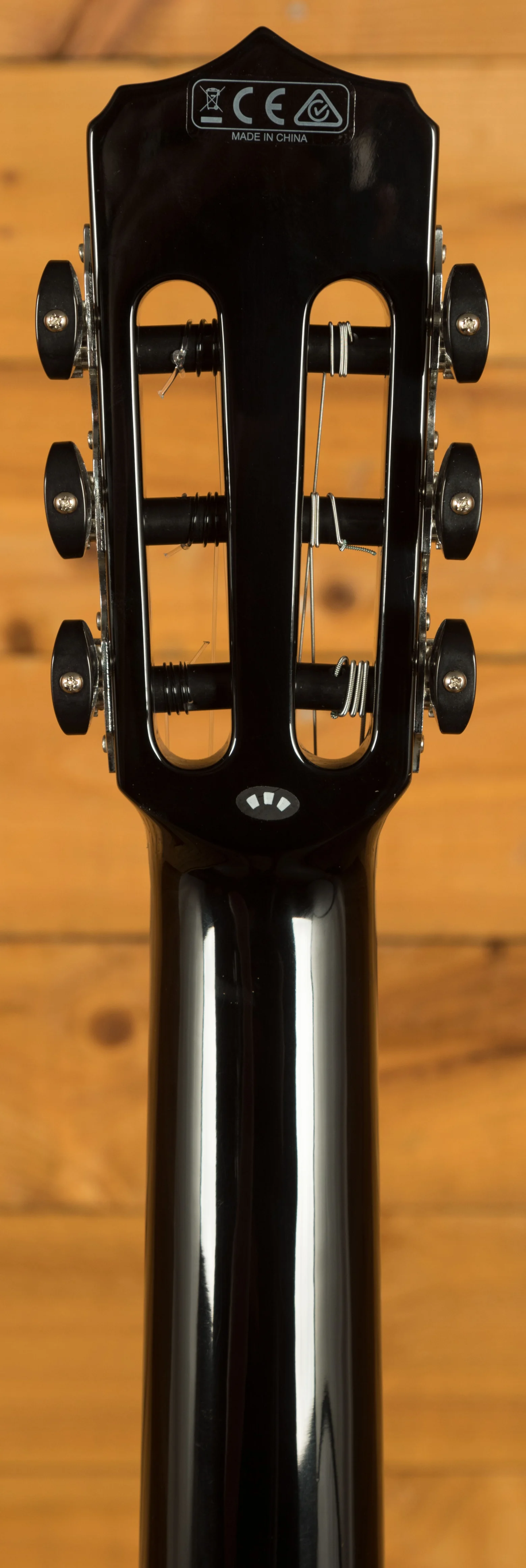 With a C shape mahogany neck, the Cordoba Fusion Stage is comfortable and feels great underhand. The Ebony fingerboard features a 16" radius, 48mm nut width, 25.6" scale length and 22 frets. Whether you're playing slick lead lines or lush chords this neck will cause no issues. It also gives non-classical players the chance to experience the joy of the nylon-string sound with a steel-string neck feel.
