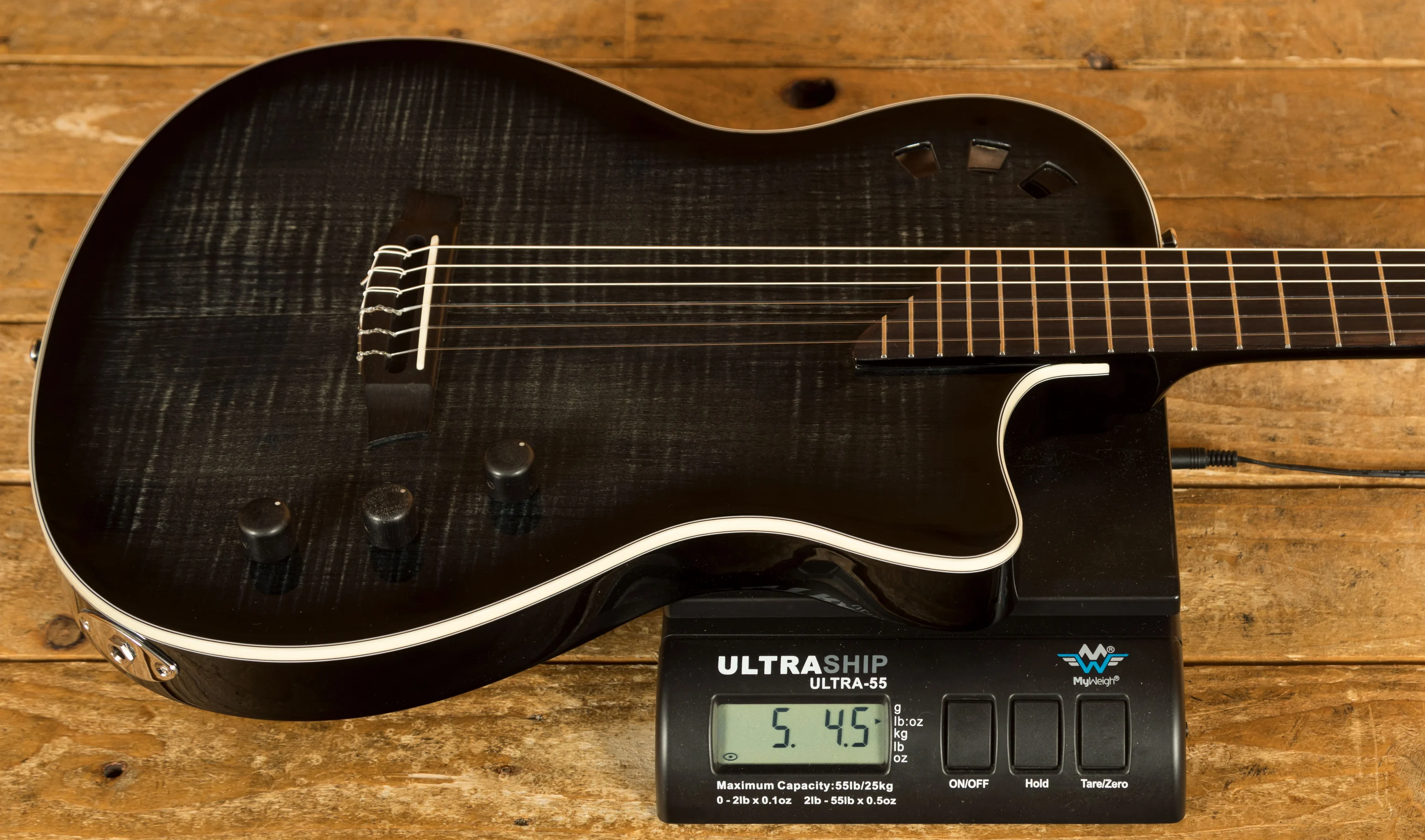 This guitar features a fully chambered mahogany body, allowing for increased resonance and acoustic projection. Thanks to the chambered construction this guitar is super lightweight and feels great to play both standing or sitting. It also includes a stunning flame maple veneer, which has been beautifully stained with an Black Burst finish.