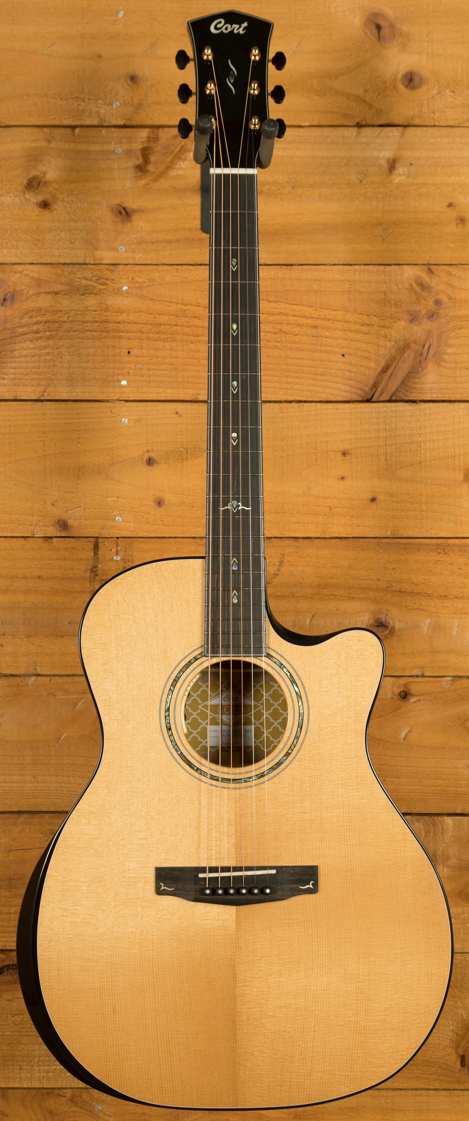 The shaping and treatment of a guitar's frets have a big impact on comfort and performance. Most guitar makers simply bevel the frets at each end to eliminate the sharp edges. Boutique acoustic builders, however, use a method to dress their frets to make them round, smooth, and ultra-comfortable to touch and play. This process is highly complex and time-consuming and requires the skilled workmanship of experienced craftsmen. On the Gold, the Cort offers this enhancement typically reserved for much higher priced instruments.