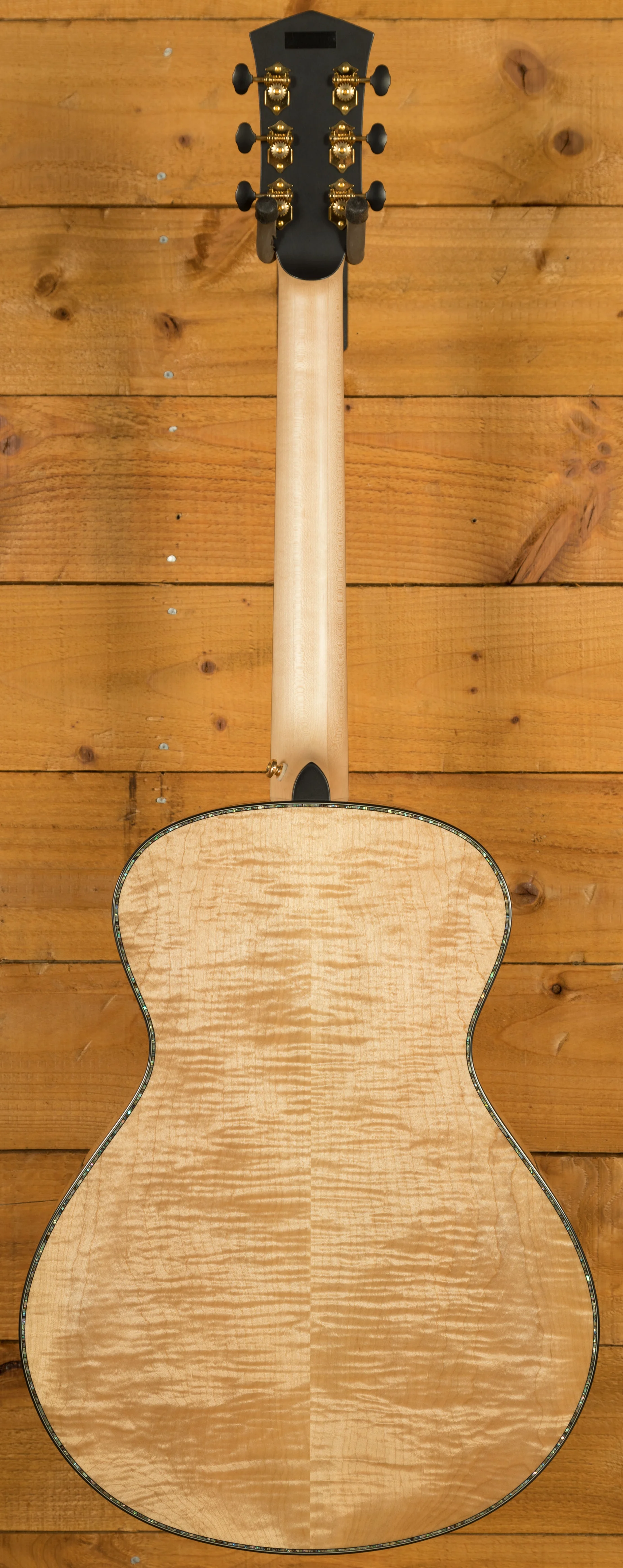 Flamed Maple is like a combination of the low-mids of mahogany, and the rich overtones of rosewood. This versatility makes Flamed Maple stand out for both fingerstyle playing or strumming as well as being a perfect match for the spruce top.