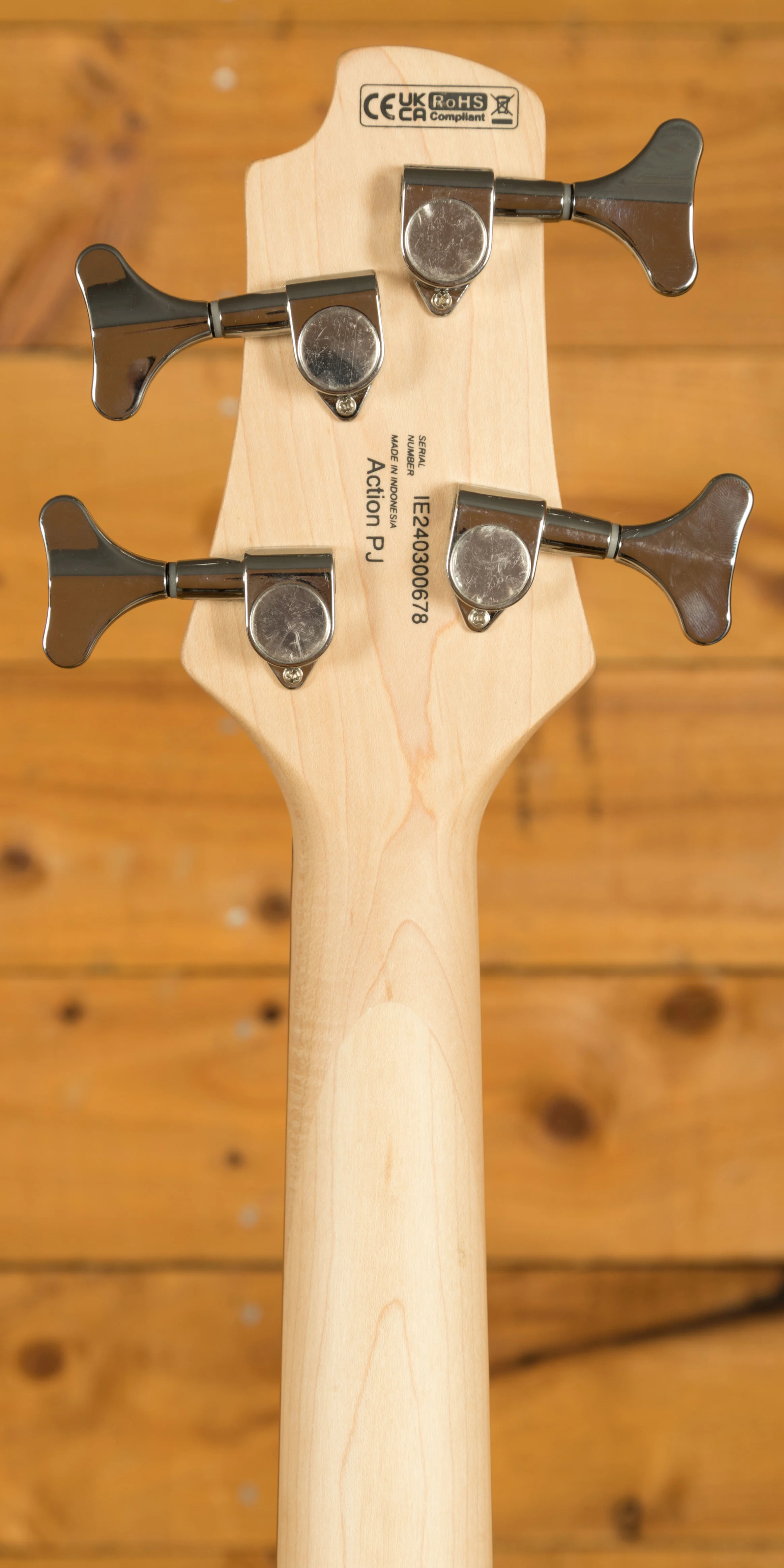 Designed for comfort, the ergonomic body shape reduces fatigue during extended playing sessions, making it ideal for both beginners and experienced musicians. The die-cast machine heads offer reliable tuning stability, while the open-pore finish enhances the natural acoustic properties of the wood. Whether you're laying down deep grooves or exploring melodic bass lines, the Action PJ delivers a dynamic and responsive playing experience at an exceptional value.