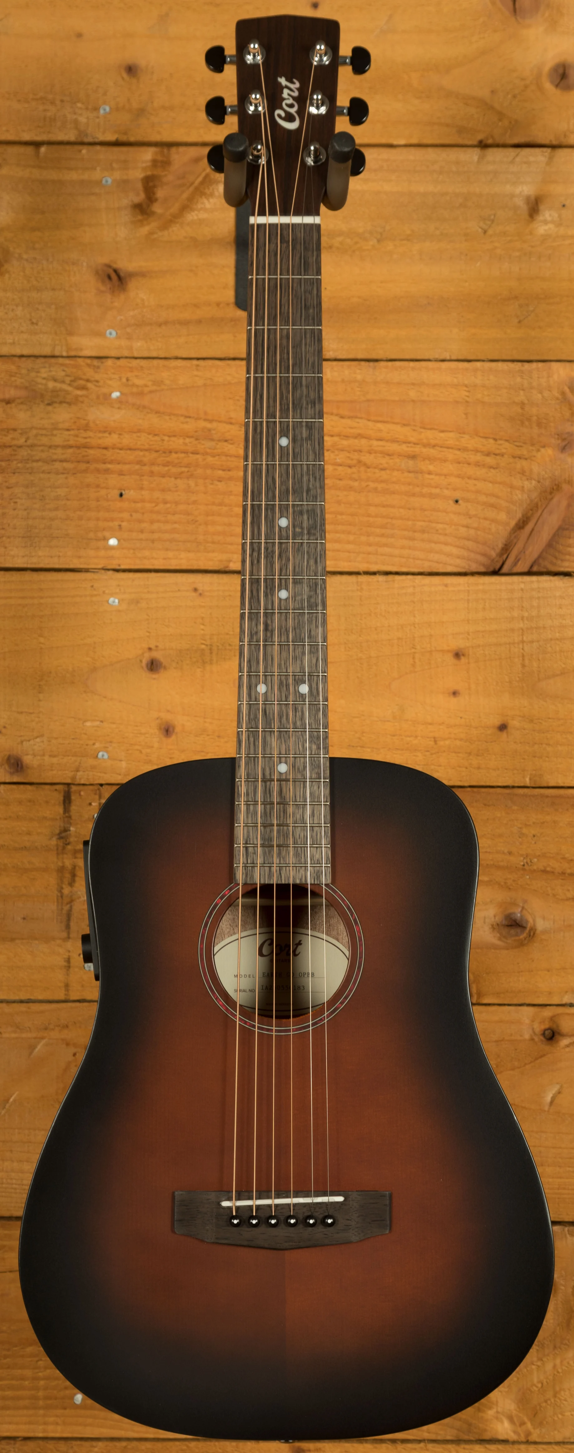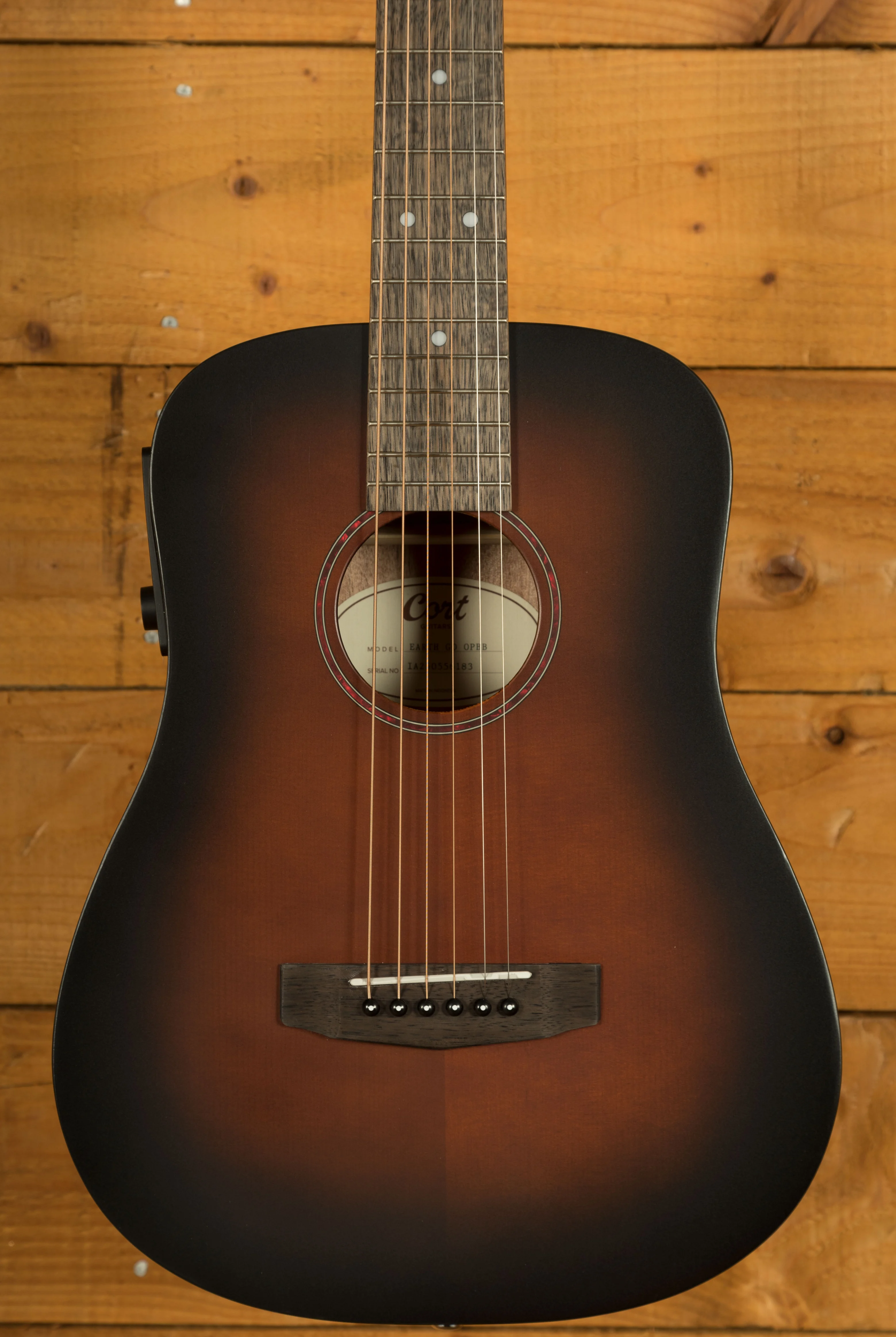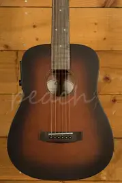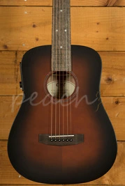 The Cort Earth GO is a 3/4 size mini dreadnought acoustic guitar designed for portability and comfort without sacrificing quality. Its solid Sitka spruce top provides excellent projection and clarity, while the mahogany back and sides add warmth and depth to the tone, making it suitable for a wide range of playing styles. With a compact 22.8" scale length and lightweight build, it is easy to transport, making it a practical option for travel or for any players who prefer a smaller instrument.