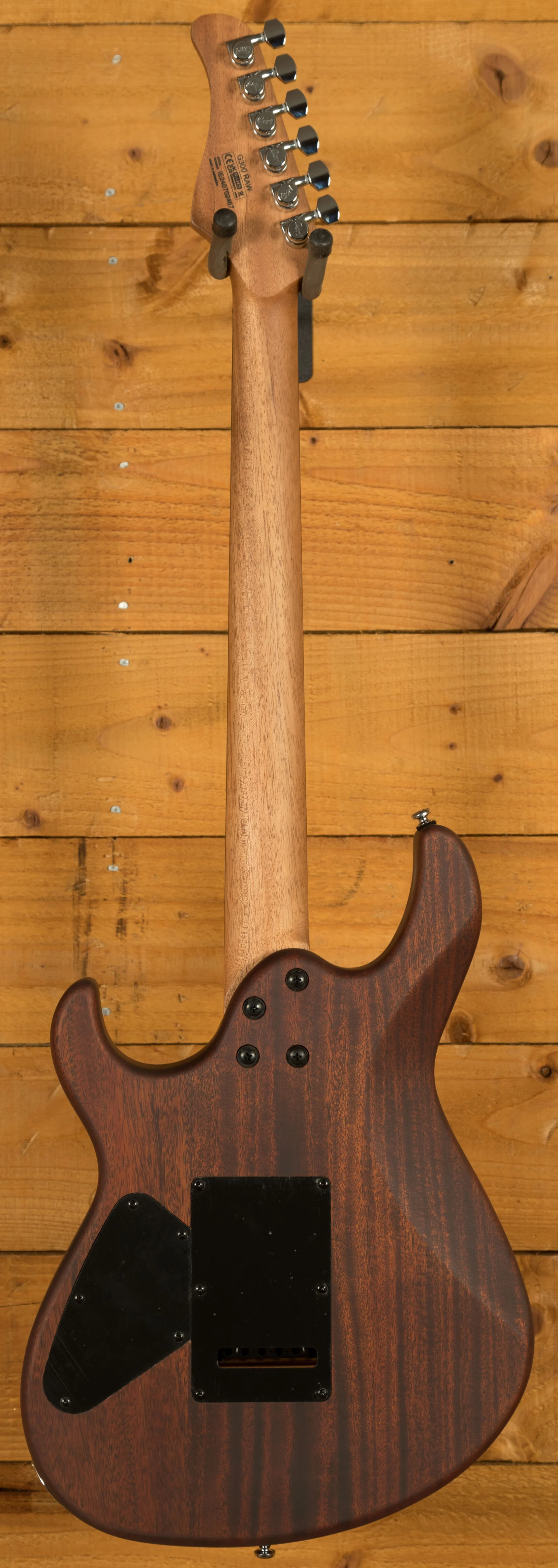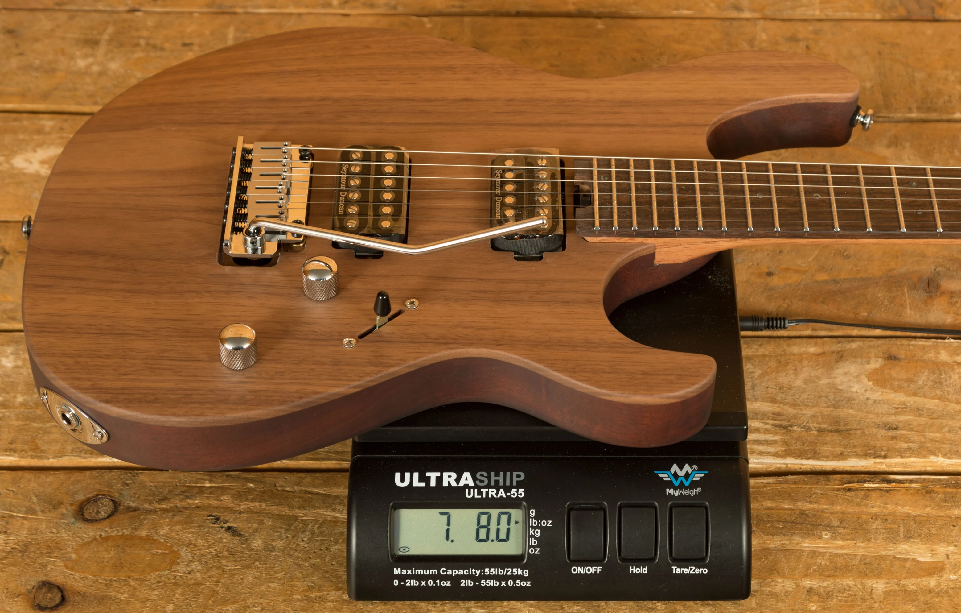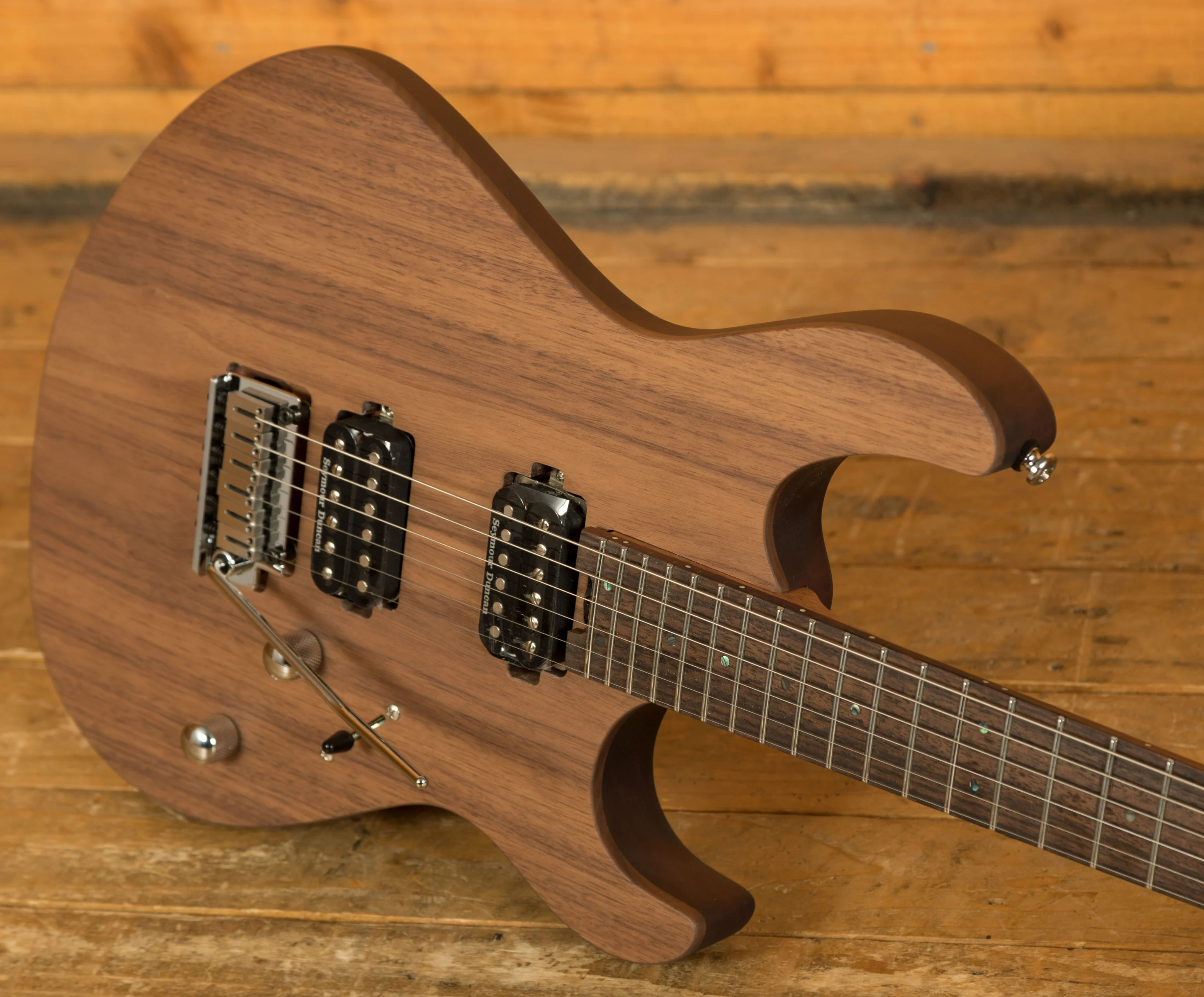 This prestigious wood combination boasts deep and rich mid-low tones from the African Mahogany body, and bright tones with great sustain and tight low end from the 6mm (1/4") walnut top that is simply stunning to look at and touch. The chambered design on the mahogany body helps reduce any excessive weight.