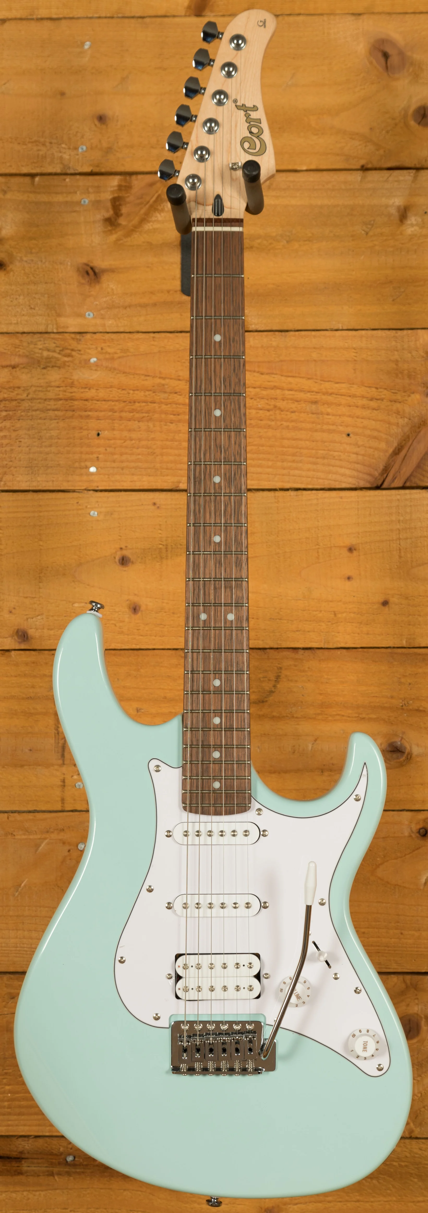 Cort staggered locking tuners ensure stable tuning and quick string changes. The 6-point vintage-style tremolo bridge adds expressive control for vibrato effects. Finished with a jatoba fretboard and simple control layout, the G200 is a reliable, affordable option for players exploring multiple genres.