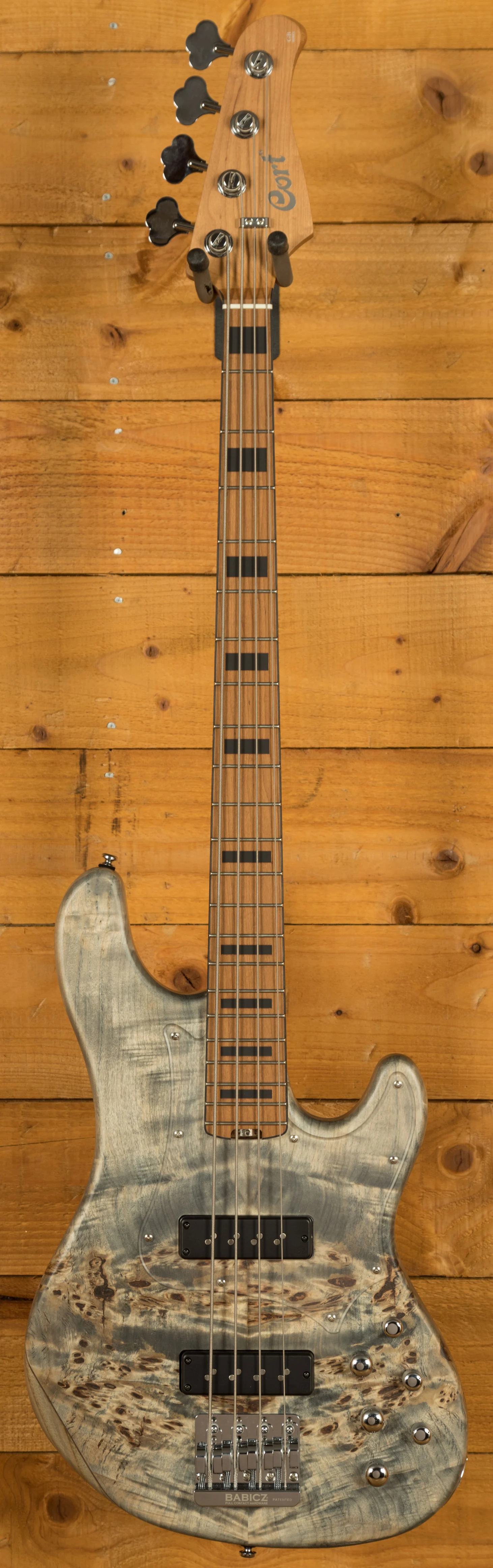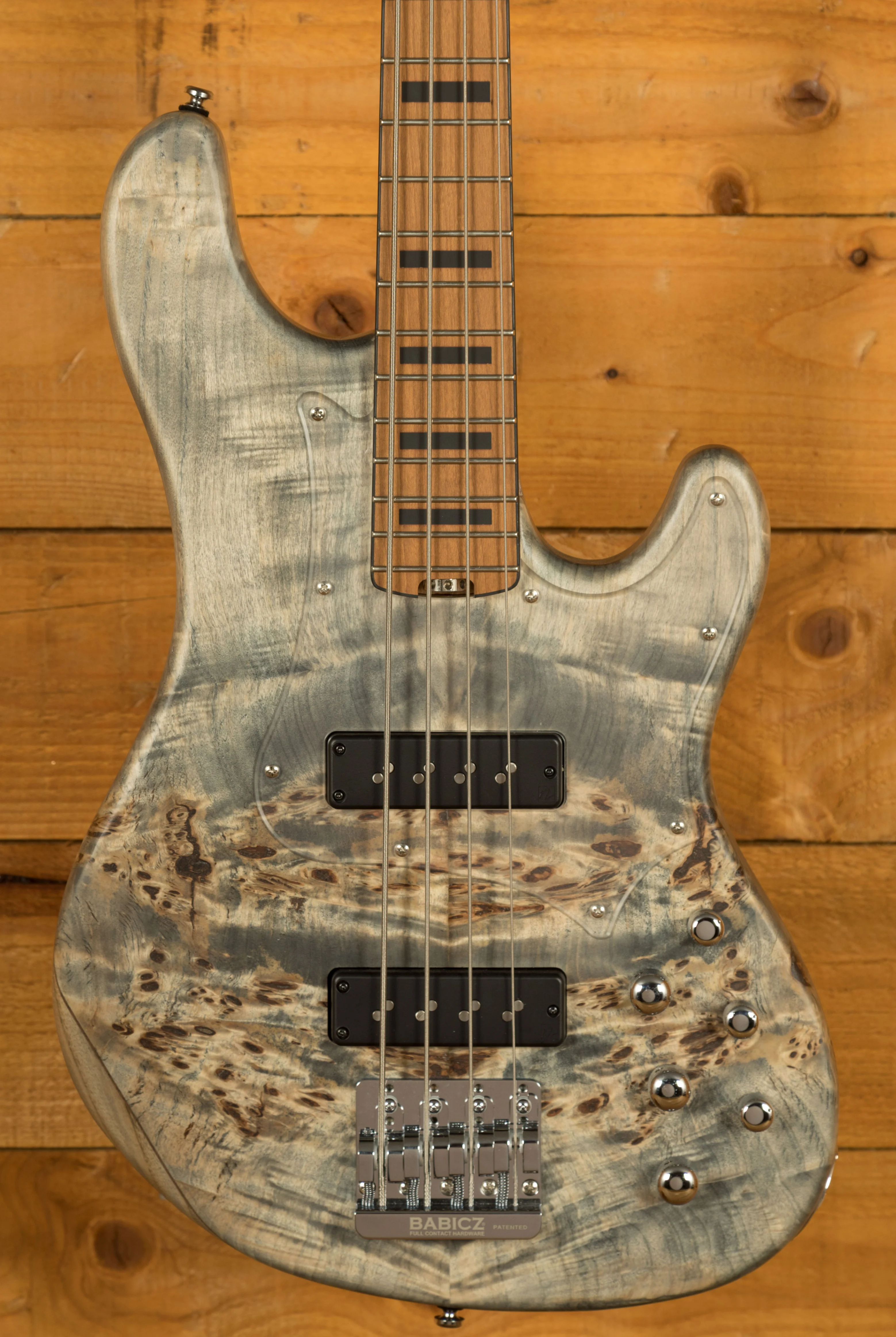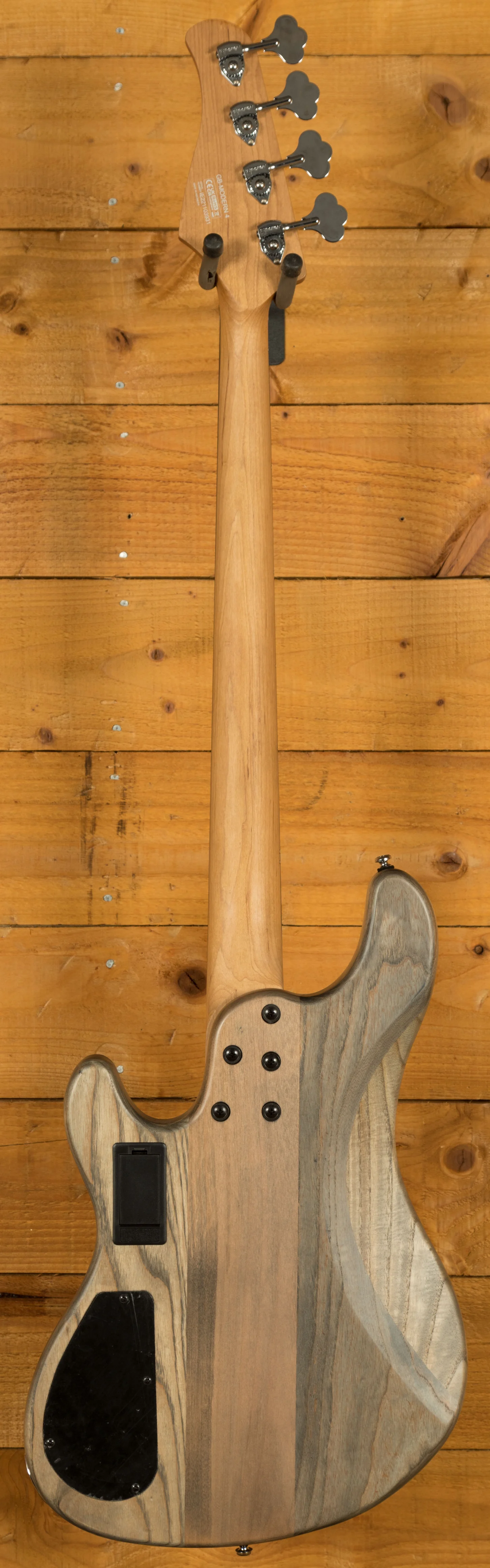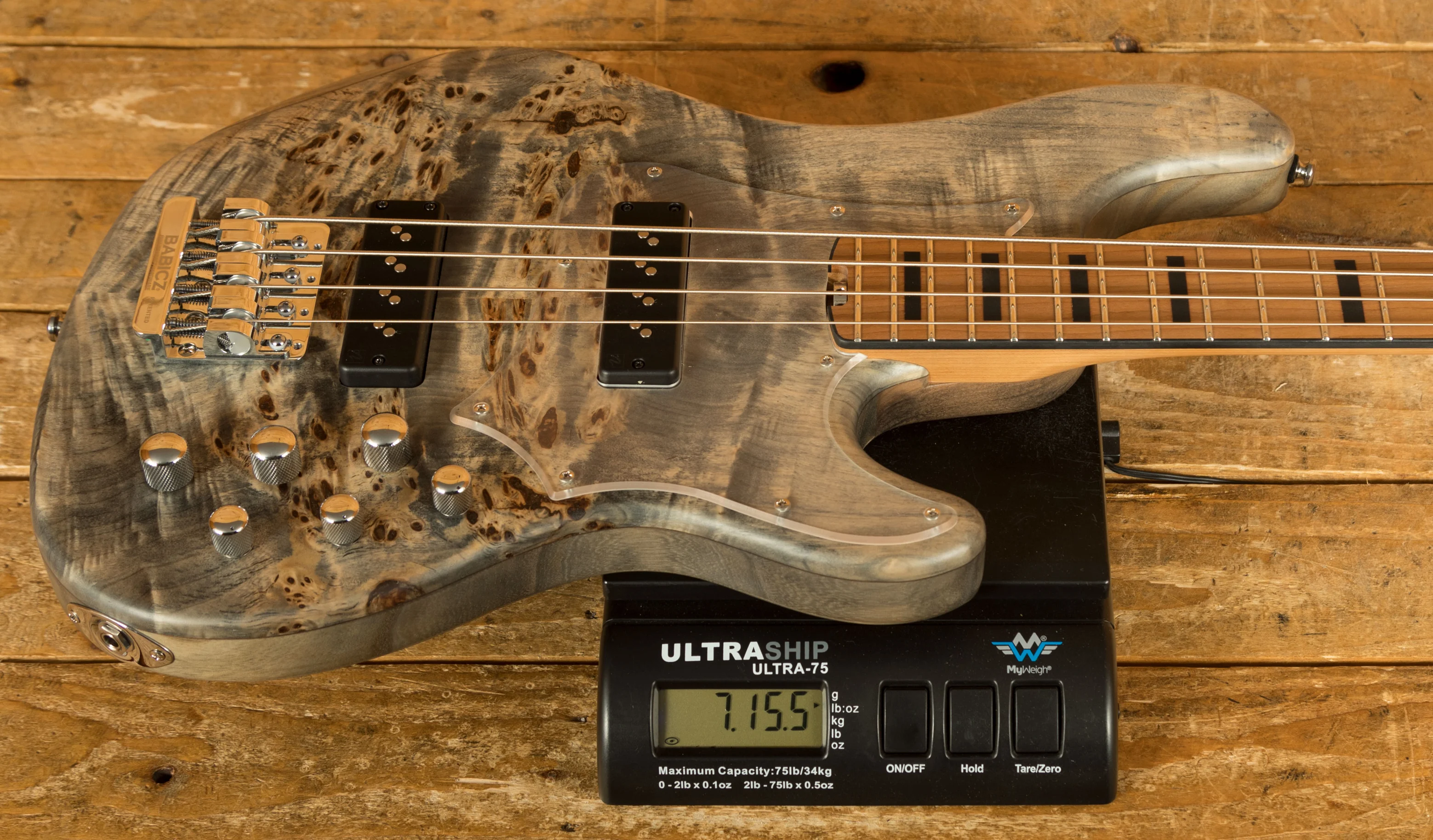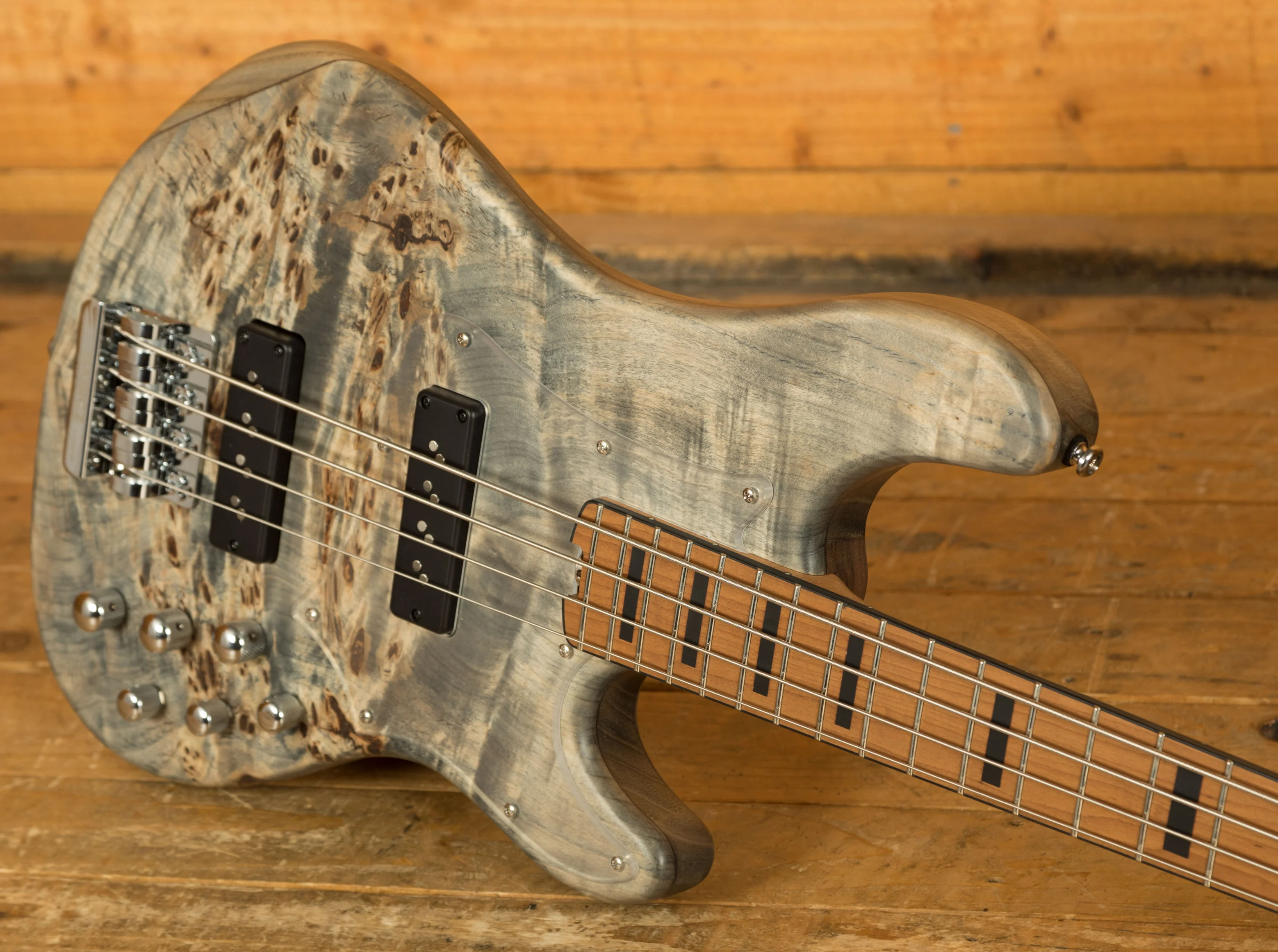 Oftentimes the weight of the instrument affects the playing experience and on a larger instrument like a bass guitar more fatigue is caused by heavier weight. While many manufacturers seek solutions by carving out large sections of body wood to reduce weight, the GB Modern's body is cleverly designed to be just as light without physically tempering the body. The maple body core is paired with light-weight paulownia wings, then gets covered with gorgeous poplar burl on the top side and white ash on the back, resulting in a combination of great tonewoods that is excellent both sonically and aesthetically.