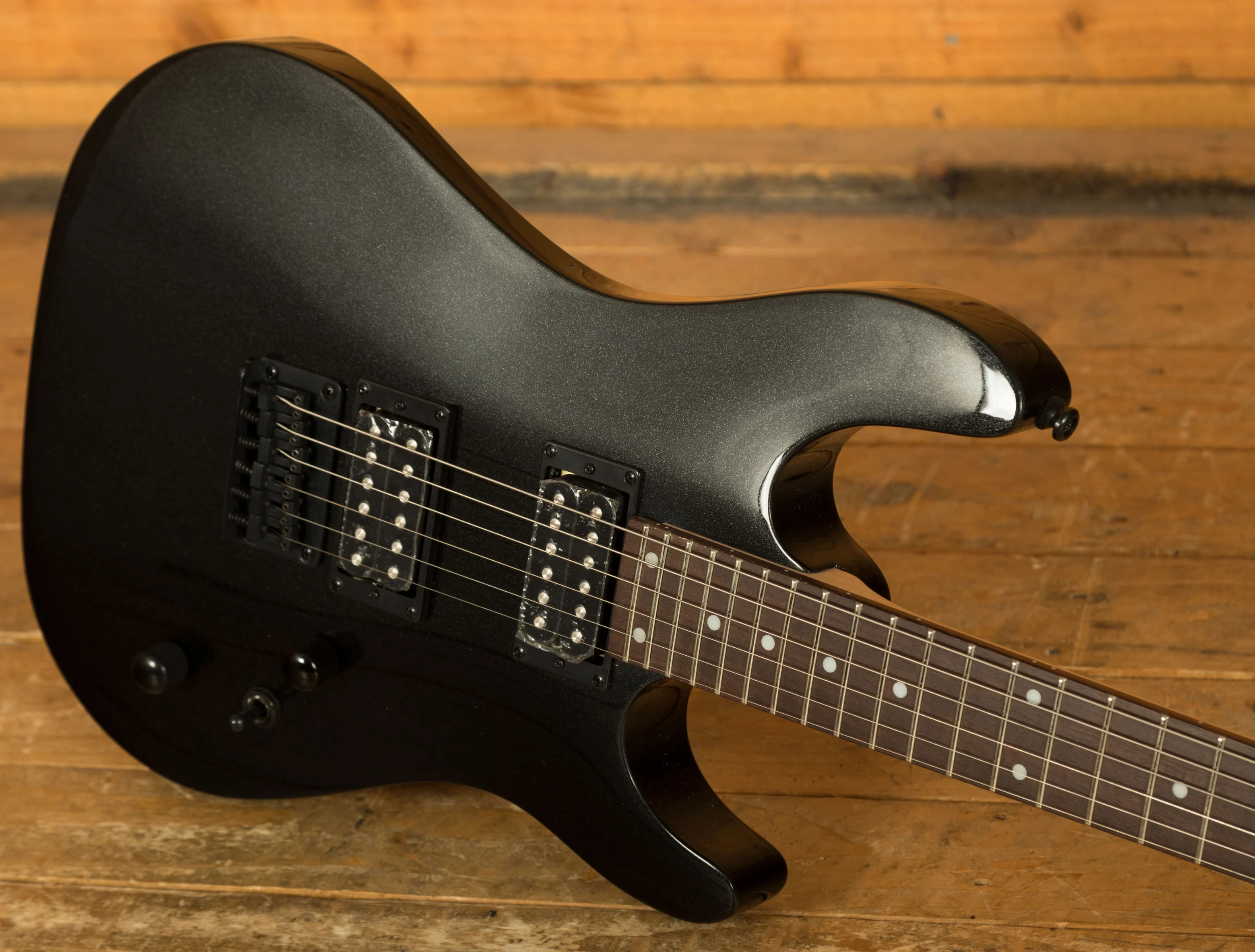 Dual Powersound humbuckers deliver hot, articulate output ideal for hard rock and metal. The simplified control layout, 1 volume, 1 tone, and a 3-way toggle, keeps things intuitive and stage-ready. A hardtail bridge ensures tuning stability and tight response, while the 24-fret jatoba fingerboard offers extended range for solos and riffing.