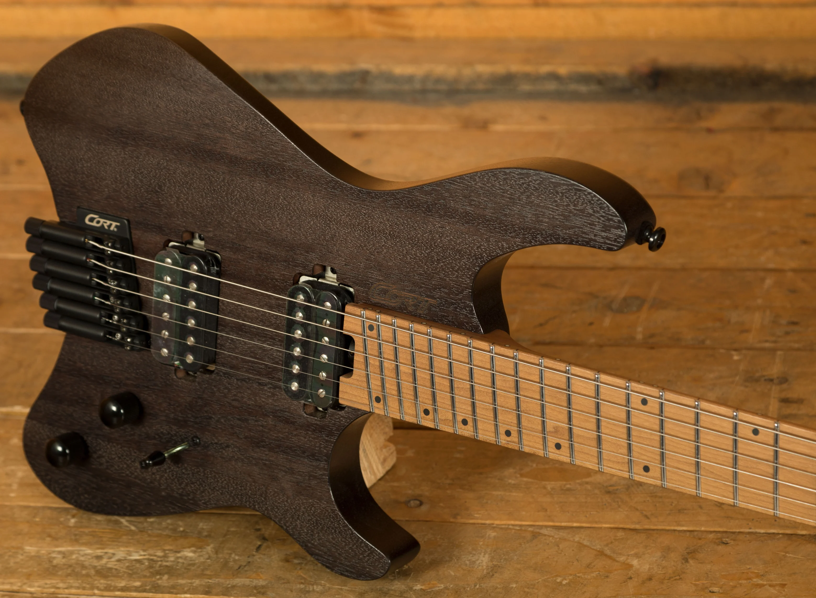 The Cort SPACE G6MS takes the headless concept into multi-scale territory, offering improved ergonomics, tighter low-end response and effortless reach across all 24 frets. Its multi-scale layout optimises string tension, giving you punchier lows, smoother highs and more accurate intonation across the entire fretboard. Combined with the compact, balanced body and specialised headless hardware, the G6MS feels controlled, comfortable and fast in every playing position.
