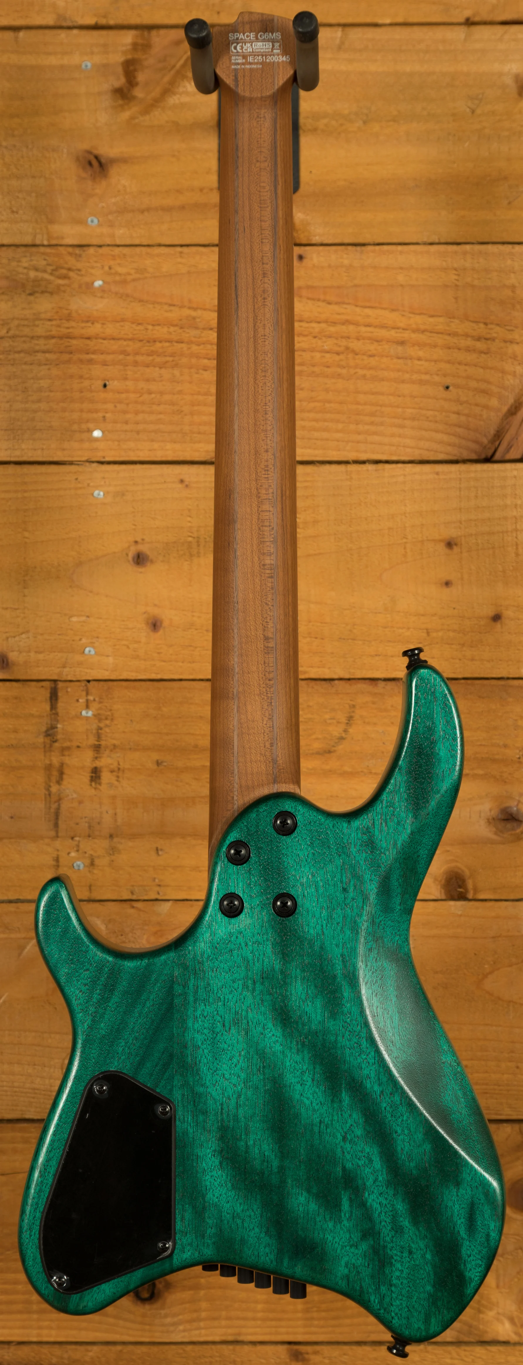 Like its sibling, the G6MS is built for speed. Stainless-steel frets, a fast compound radius and an ergonomic neck profile make it ideal for technical playing, fast runs and precise articulation. The five-piece roasted maple and walnut neck adds strength and stability, giving the guitar a solid, dependable feel that holds up under demanding use. With its multi-scale precision, modern voicing and headless efficiency, the SPACE G6MS is built for players who want tight, controlled performance and a fast, contemporary feel.