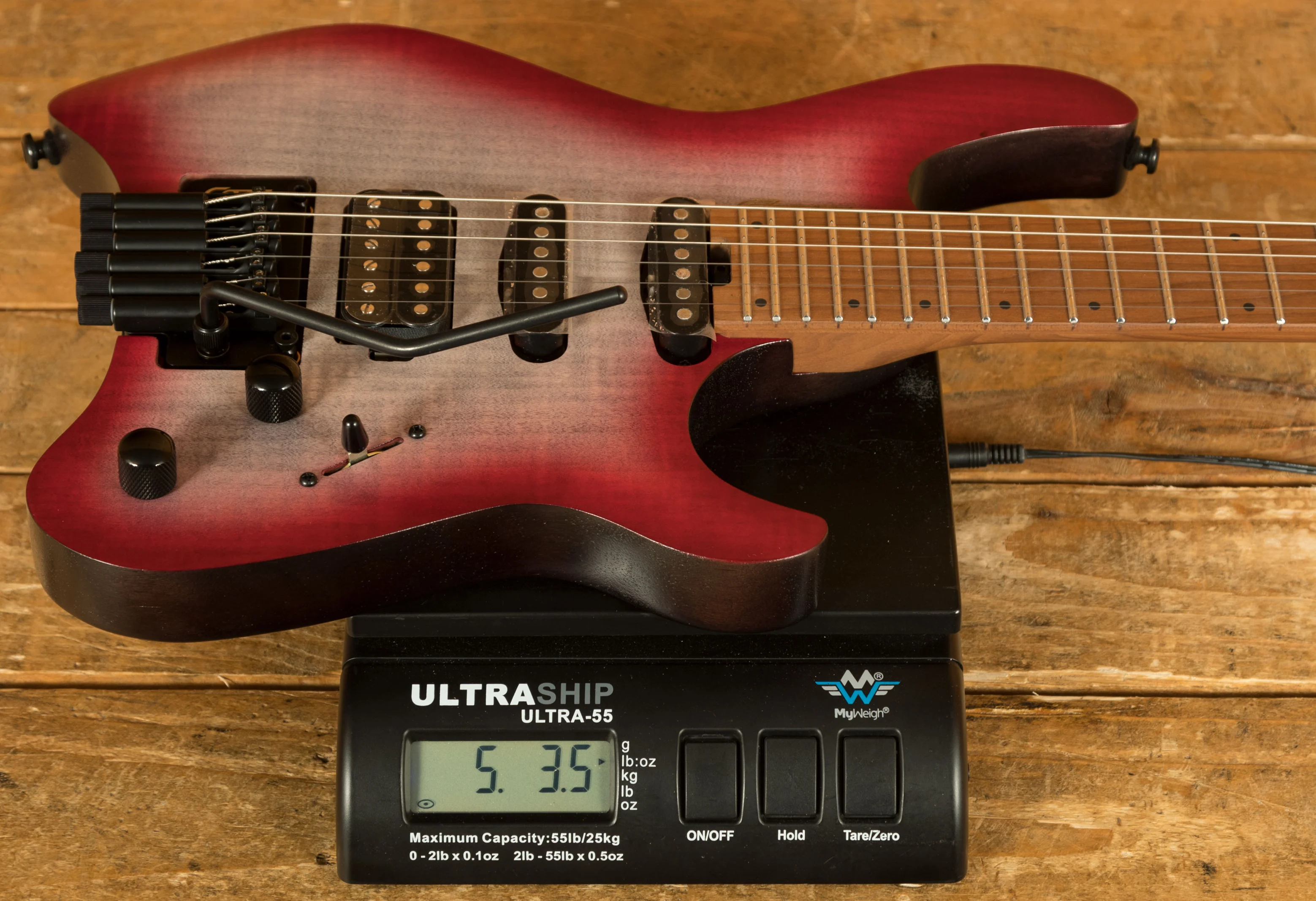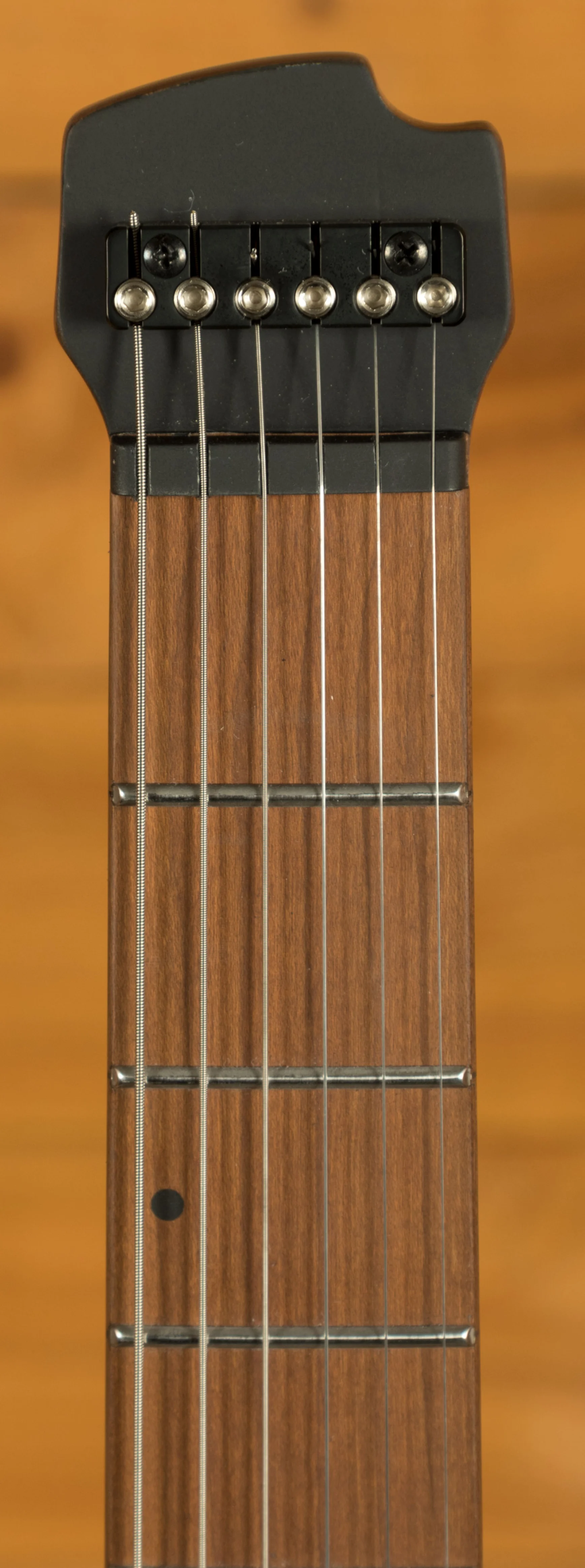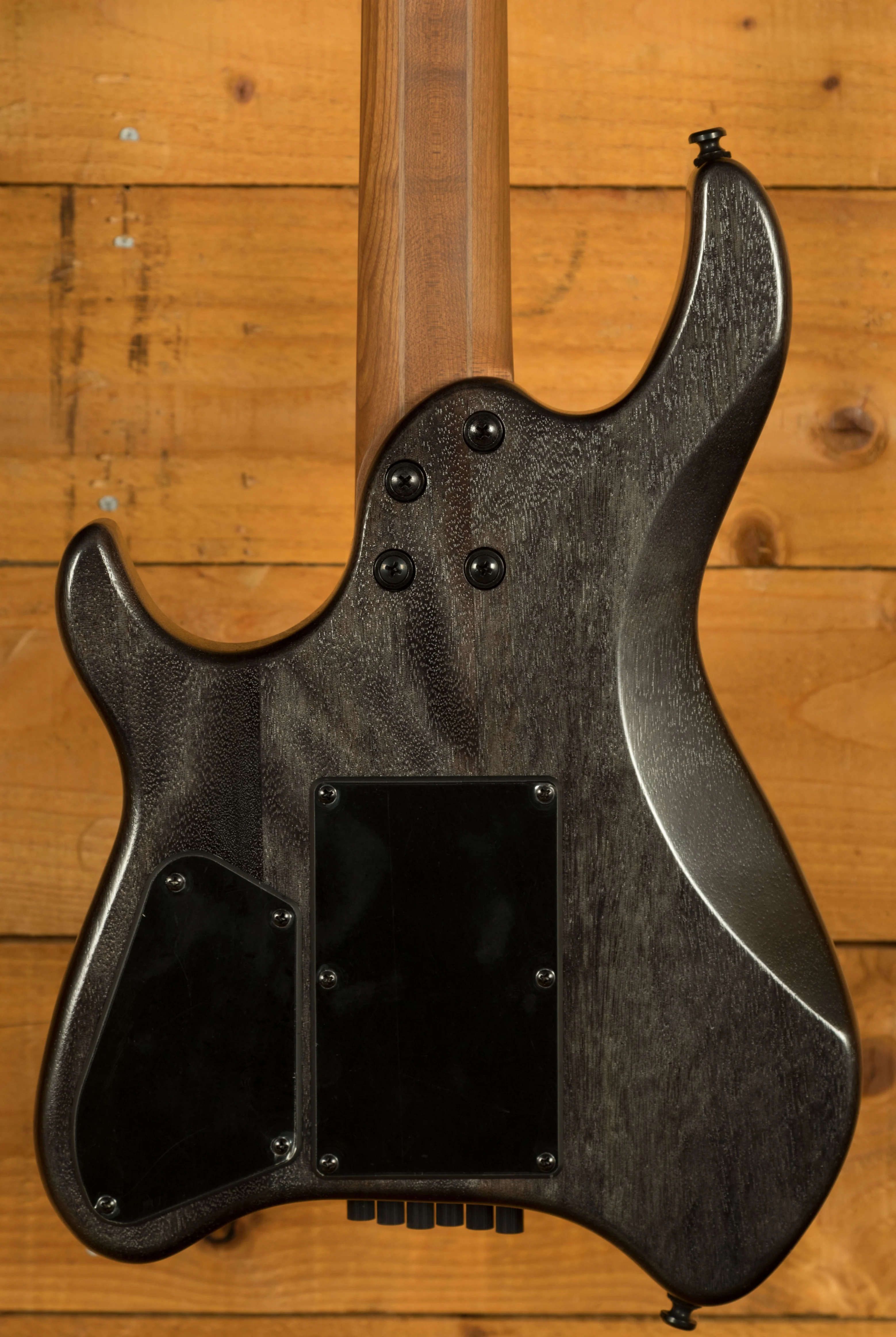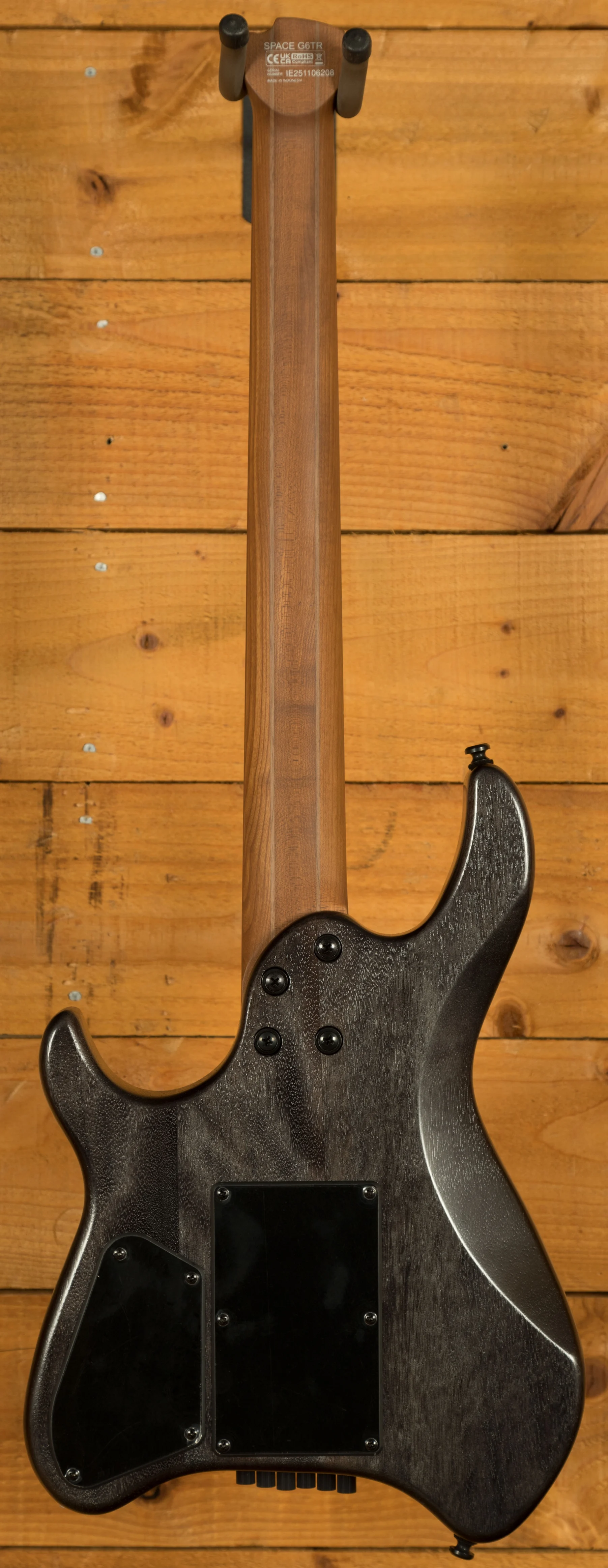 The guitar is built for speed, with stainless-steel frets, a fast compound radius and an ergonomic neck profile that encourages accuracy and fluid movement. Glow-in-the-dark side markers make it easy to navigate the fretboard on dark stages, while the five-piece roasted maple and walnut neck adds stiffness, stability and a premium feel without sacrificing comfort. Lightweight, balanced and ready for anything, the SPACE G6TR is a headless guitar designed for real-world performance.