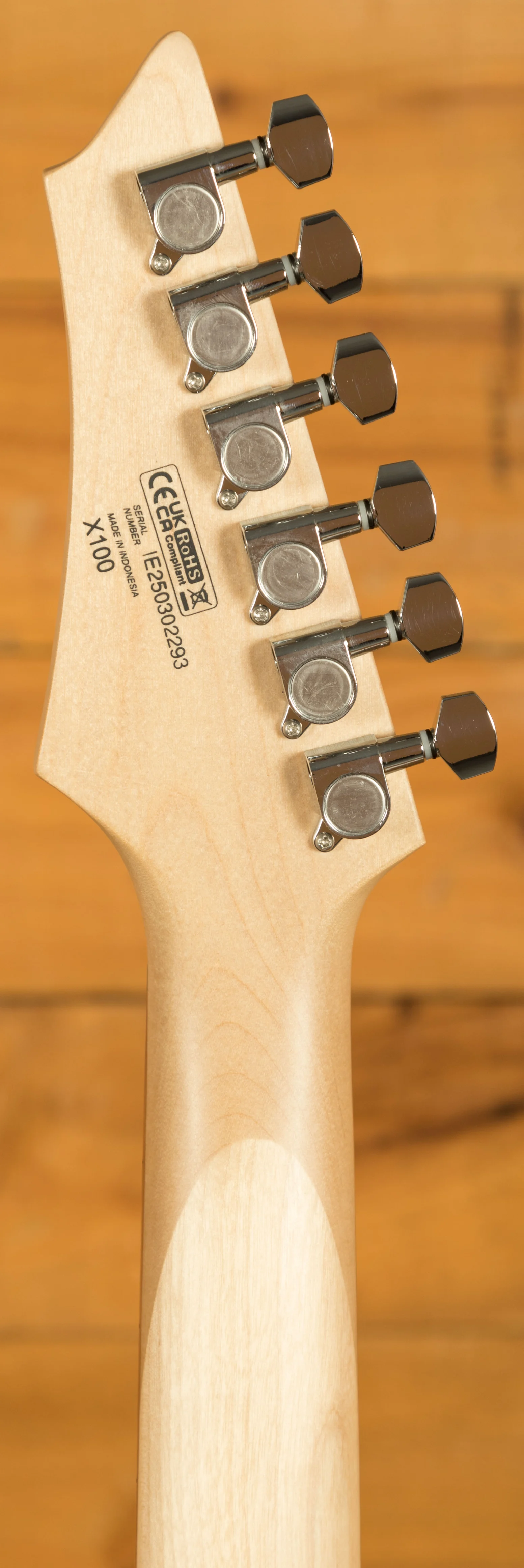 The Cort X100 is the entry-level model of the X Series, designed to deliver fast playability and versatile tones at an accessible price point. It features a Meranti body, a Hard Maple neck, and a Jatoba fingerboard with a 15.75" radius, making it comfortable for both chords and lead playing. With a 25.5" scale length and 24 frets, players have extended range and easy access to higher notes, making the X100 suitable for a wide range of musical styles.