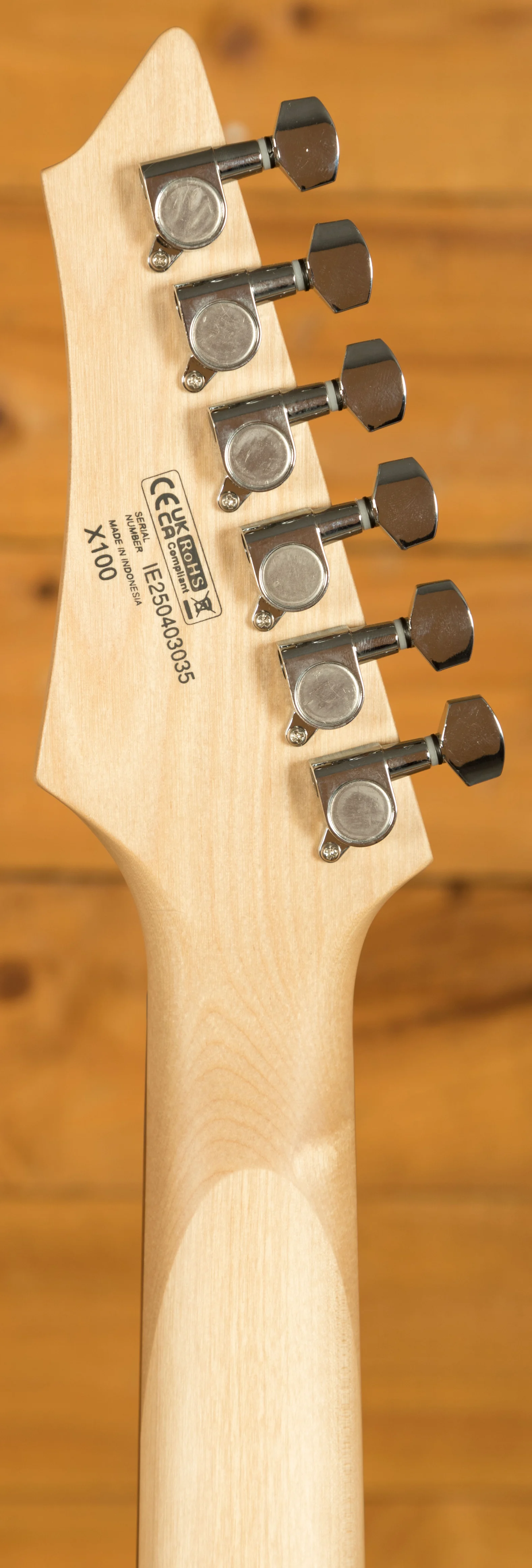 The Cort X100 is the entry-level model of the X Series, designed to deliver fast playability and versatile tones at an accessible price point. It features a Meranti body, a Hard Maple neck, and a Jatoba fingerboard with a 15.75" radius, making it comfortable for both chords and lead playing. With a 25.5" scale length and 24 frets, players have extended range and easy access to higher notes, making the X100 suitable for a wide range of musical styles.
