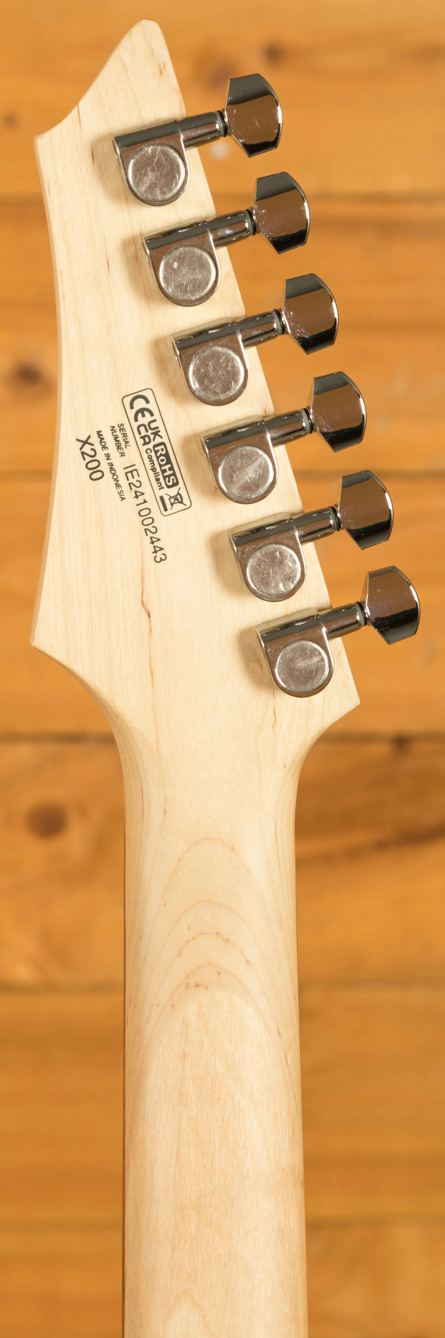 The guitar's body is constructed from poplar, a tonewood known for its sonic similarities to alder. Poplar delivers a full sound with prominent mid-range frequencies and a solid low-end, maintaining balance across the tonal spectrum. This makes the X200 suitable for a variety of musical genres and playing styles.