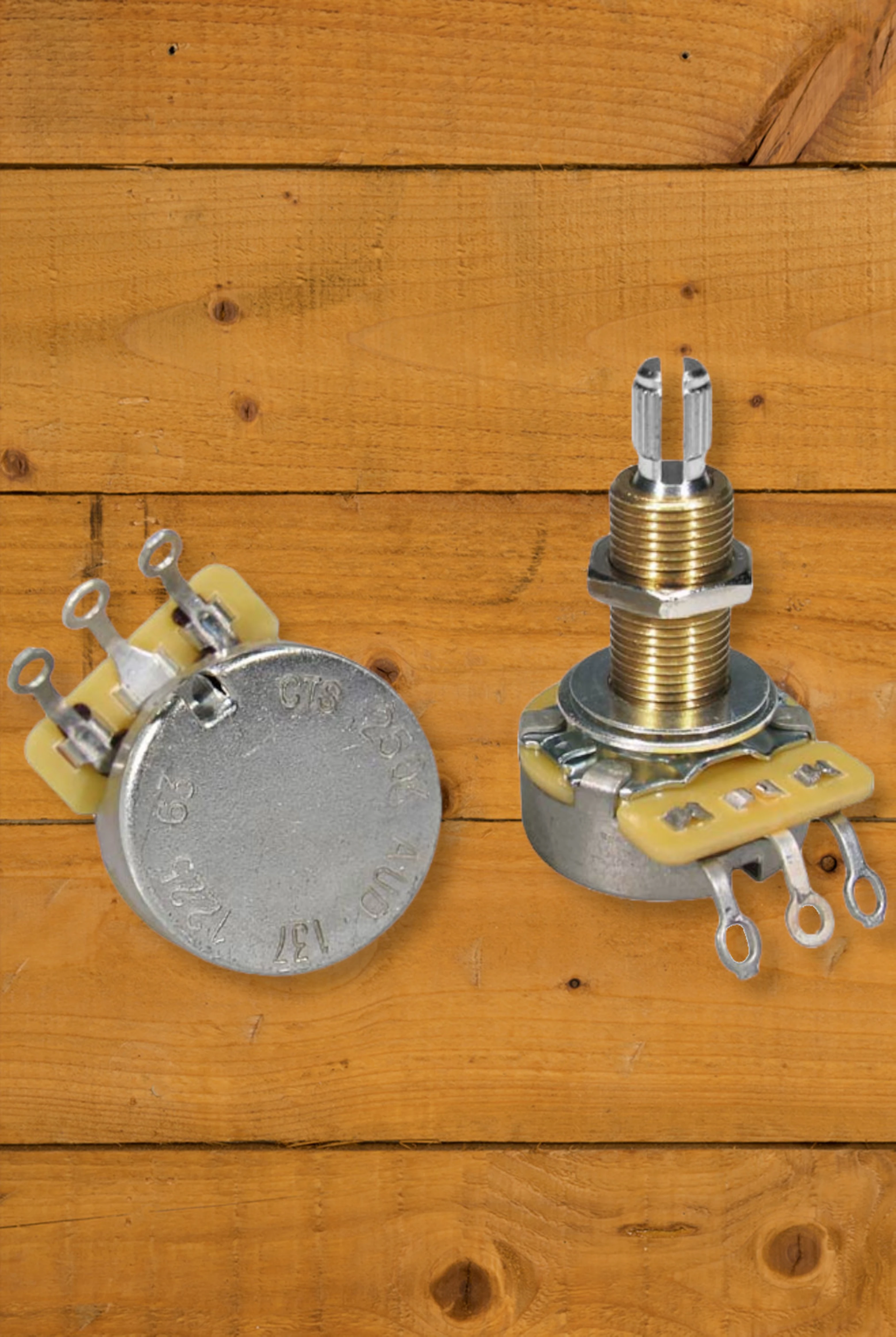 250K audio potentiometer, long bushing .750", 3/8" diameter, for thick/carved tops, LP USA