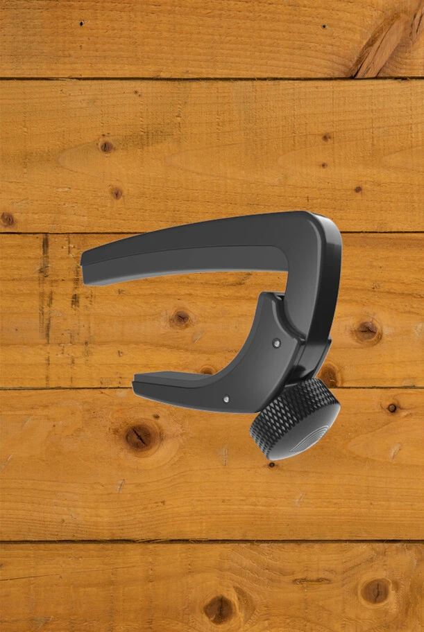 The Capo Lite is made from high-strength Moulded ABS thermoplastic for use on acoustic and electric 6 string guitars. A patented micrometer adjustment mechanism allows the player to dial in the exact tension needed for your guitar, strings and playing position. This greatly reduces the need to retune your guitar during and after capo use. The capos Moulded ABS design offers light weight, ease-of-use and superior functionality at an affordable price. Enjoy buzz-free in-tune performance at any fret without breaking the bank! Also available in the Pro model featuring aircraft grade aluminium construction.