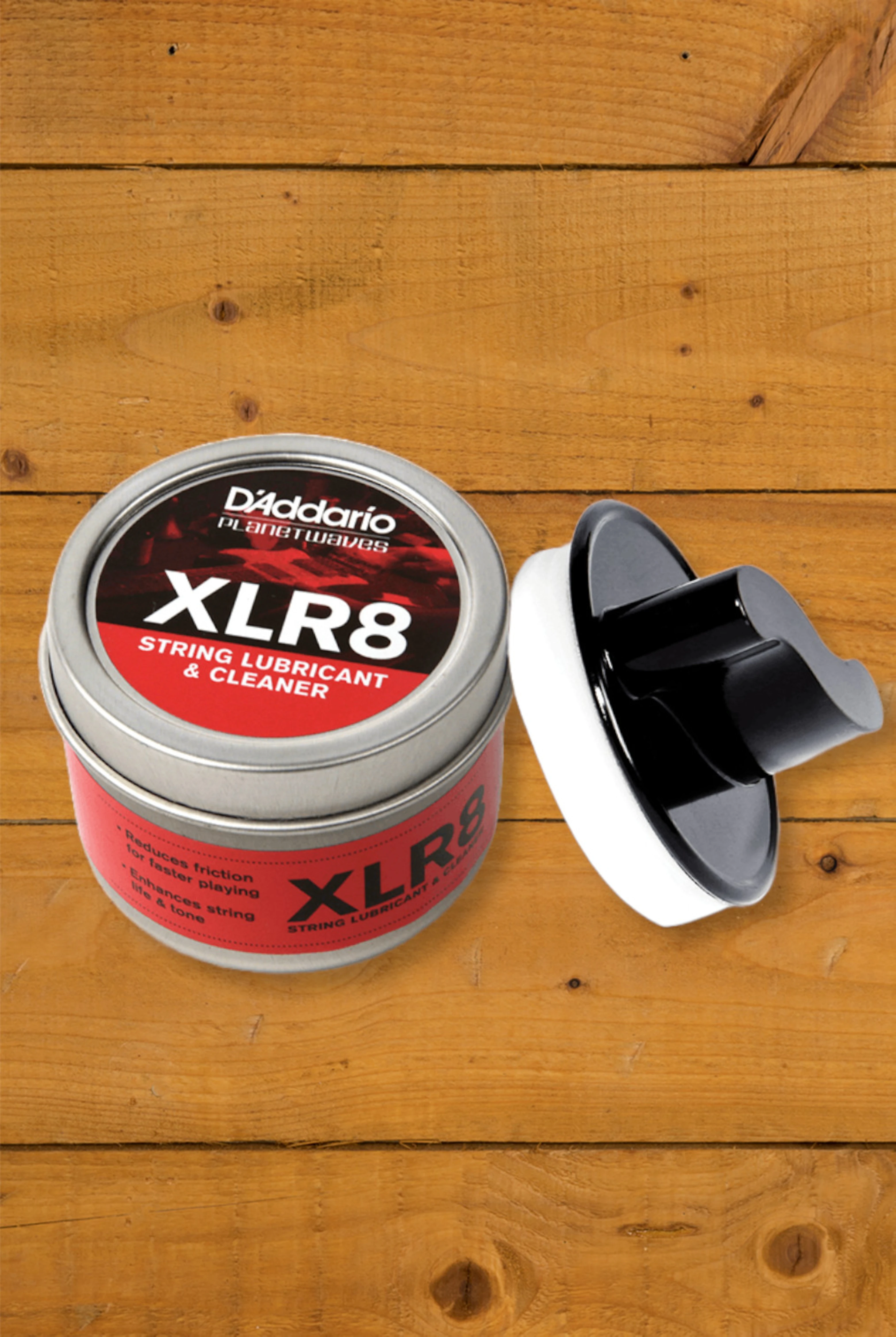 D'Addario XLR8 lubricates and cleans your strings for faster playing and longer life. Simply wipe the easy to use applicator up and down your strings and enjoy the frictionless feel of the strings allowing you to play faster while also experiencing less finger noise and enhanced tone. Packaged in an airtight metal tin that will prevent XLR8 from drying out prematurely.