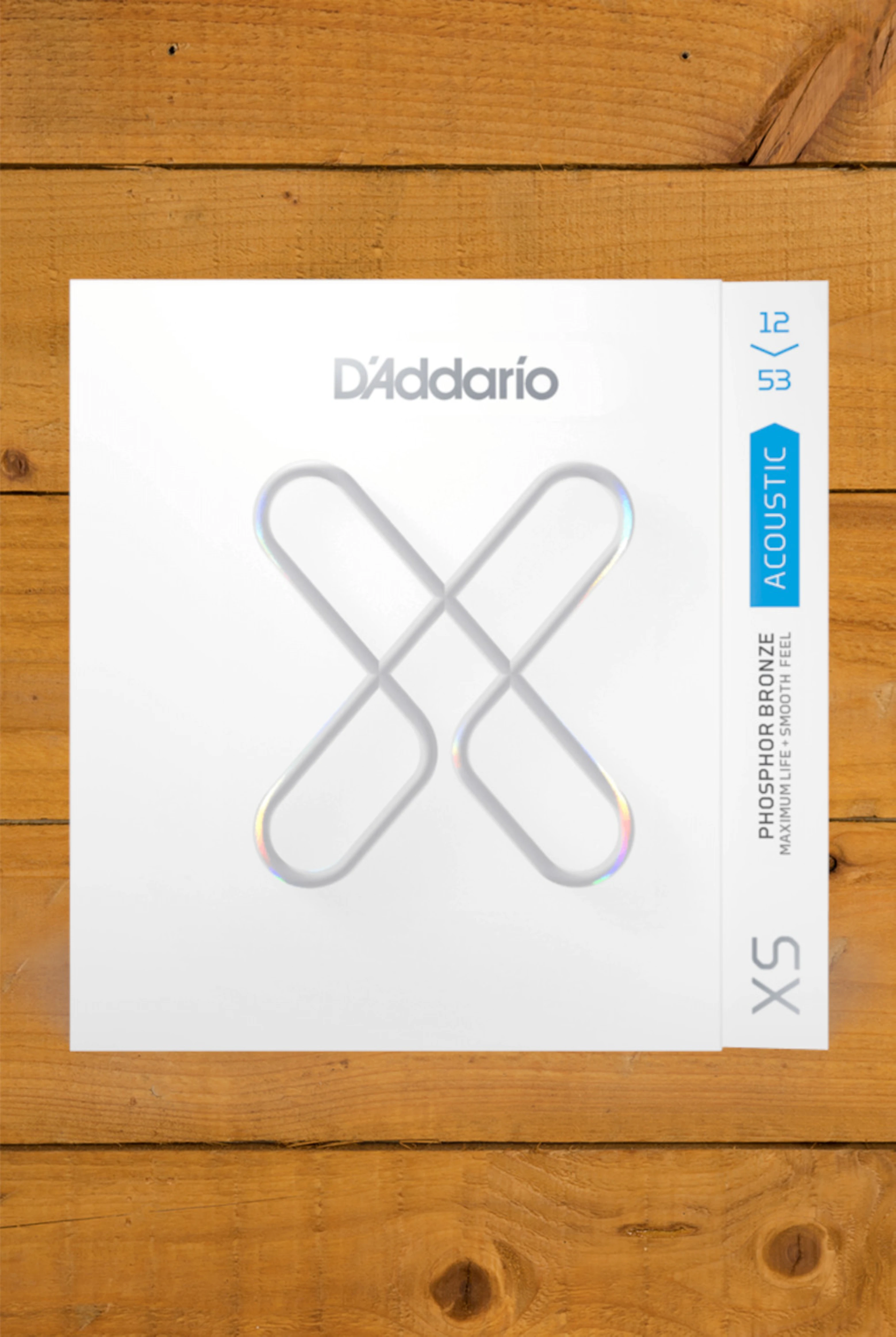 Born from D'Addario's greatest breakthrough in string innovation, XS Phosphor Bronze strings have the longest life of any D'Addario acoustic guitar string. The XS coating gives D'Addario's warm, balanced phosphor bronze strings maximum life, with an uncommonly smooth feel. Made with a NY Steel core, phosphor bronze wrap wire, and Fusion Twist technology, XS coated acoustic guitar strings have incomparable break strength and tuning stability, in addition to their dramatically increased lifespan. 12-53 Light strings are D'Addario's most popular acoustic gauge, providing a nice balance of playability and tone.