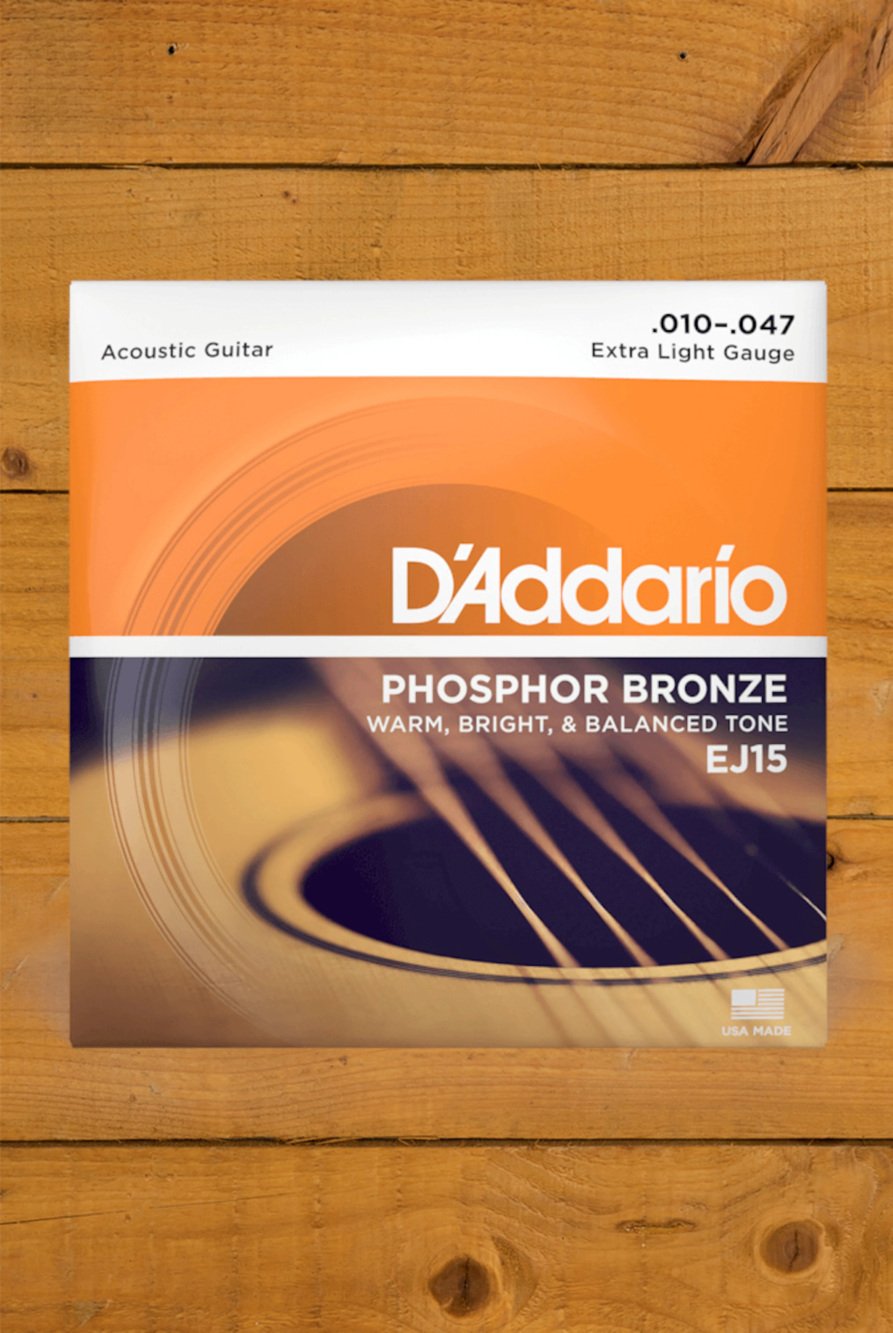 D'Addario was the first to use Phosphor Bronze in acoustic guitar strings back in 1974. Today, Phosphor Bronze is played throughout the world and considered to be the standard in acoustic strings, thanks to its beautiful sonic balance and tonal warmth. Their pioneering Phosphor Bronze acoustic guitar strings are precision wound with phosphor bronze wrap wire over a high-carbon steel core, providing tonal versatility suitable for all acoustic styles and musical genres. These 10-47 Extra Light gauge strings are easy to play and easy to bend.