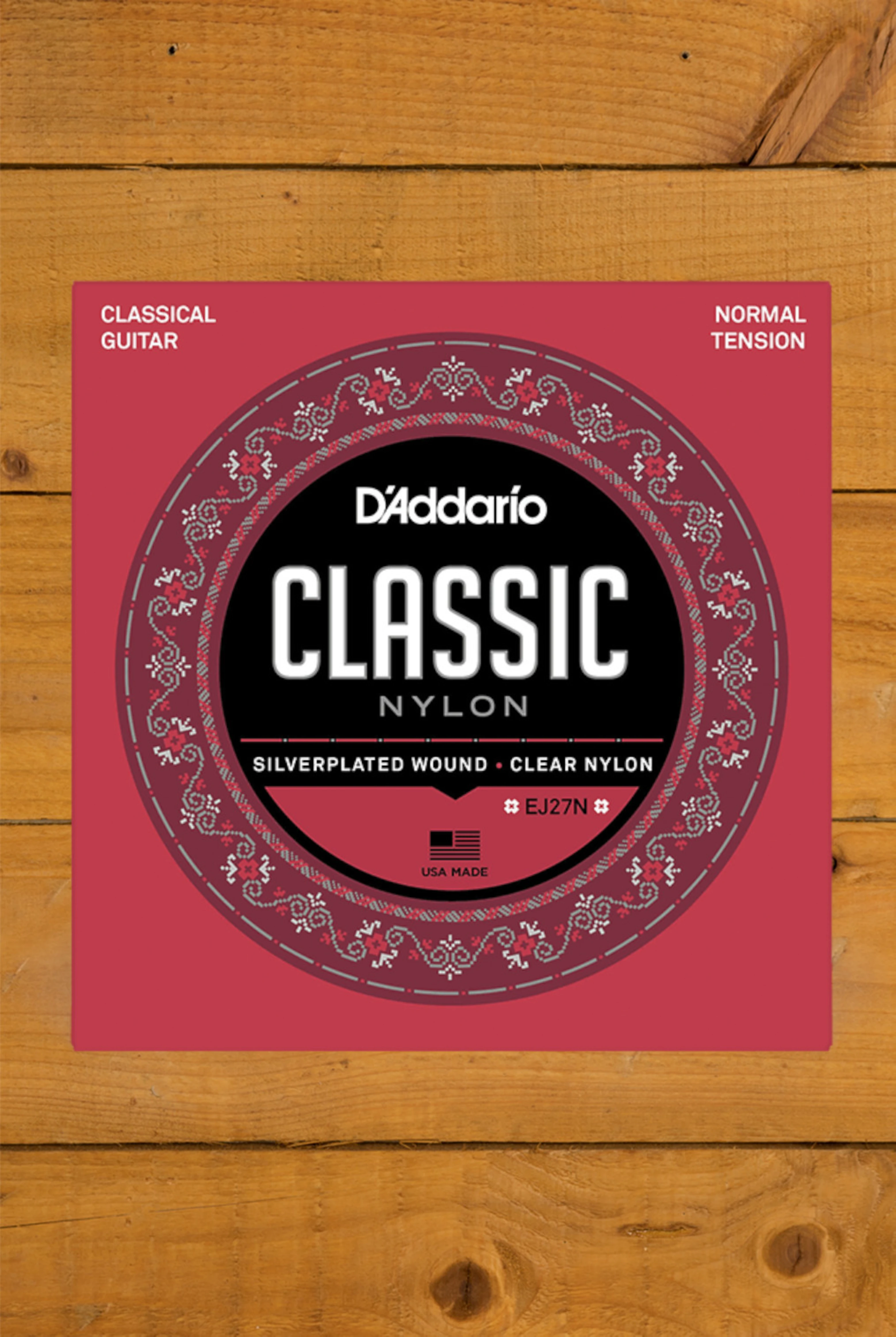 D'Addario's EJ27 Classic Nylon guitar strings are great for beginners, students and professionals alike. Each set contains 3 clear nylon trebles and 3 silver-plated copper wound basses for the optimal balance of warm and projecting, long lasting tone. Each set is held to same high standards as their professional string sets and may be used for all players looking for an inexpensive, but reliable set.