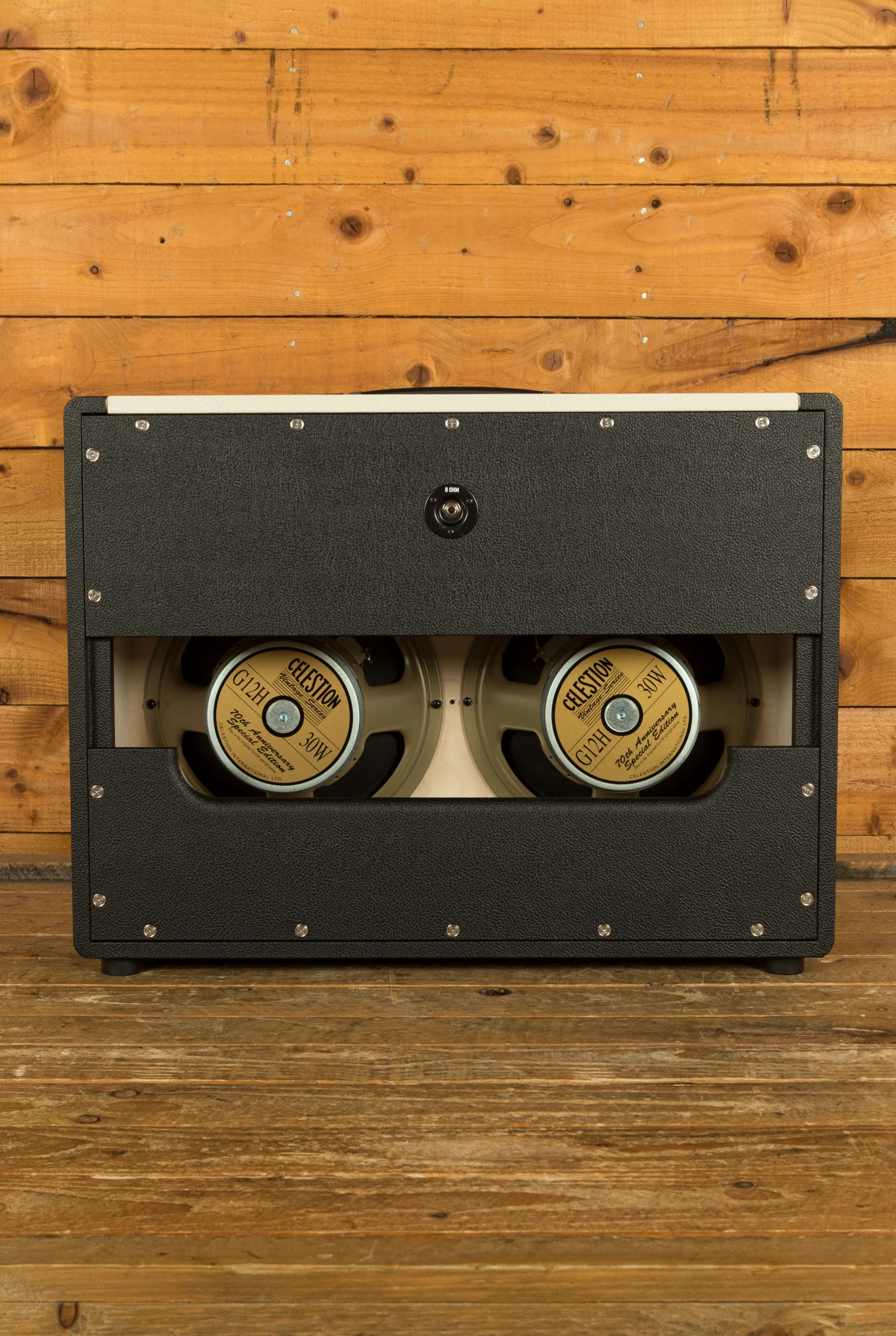 Equipped with two Celestion G12H Anniversary speakers, this cabinet pays homage to the tones of the '60s and '70s. Celebrated for their aggressive low-end, powerful low-mids, and articulate upper midrange, these speakers deliver a dynamic range of tones. Whether you're playing shimmering chords or sharp, cutting leads, the G12H captures every nuance with clarity and precision. These speakers are particularly beloved in the boutique amplifier market for their ability to cut through dense mixes and impart a commanding presence on stage.