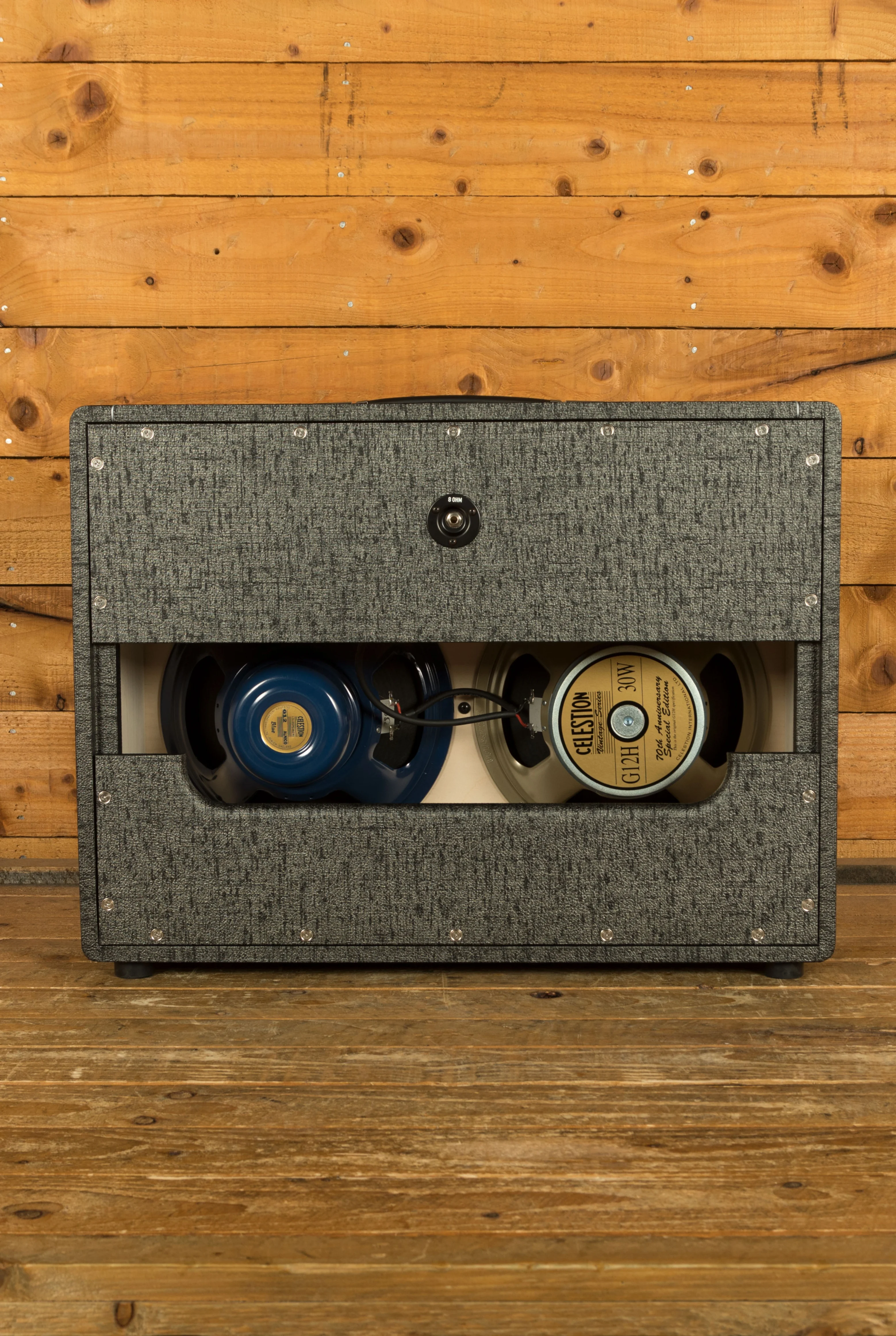 This cabinet features a pairing of the Celestion G12 Alnico Blue and G12H Anniversary speakers, offering the best of both worlds in tone.