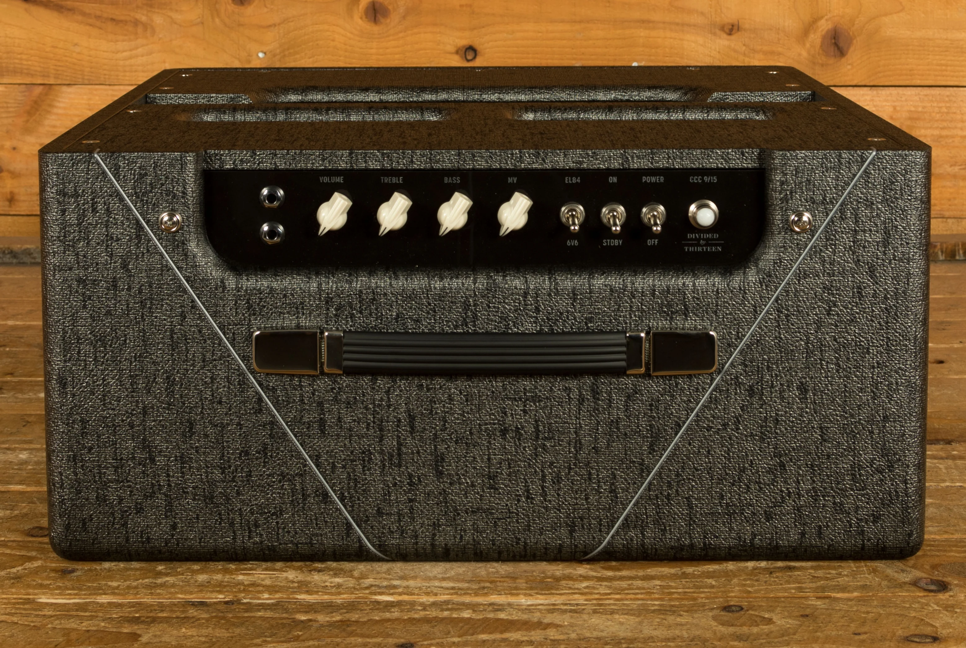 The Divided By 13 CCC 9/15 is a remarkable amplifier that merges vintage tonal characteristics with modern versatility, providing an unparalleled experience for musicians seeking both classic sounds and flexible functionality. Originally designed by Fred Taccone, this amplifier combines elements from two of Divided By 13's most celebrated models - the CJ 11 preamp and the dual 6V6/EL84 power section of the JRT 9/15. Now under the ownership of Two-Rock Amplifiers, the CCC 9/15 continues its legacy of excellence, embodying the meticulous craftsmanship and innovation that have defined the Divided By 13 brand for over two decades.