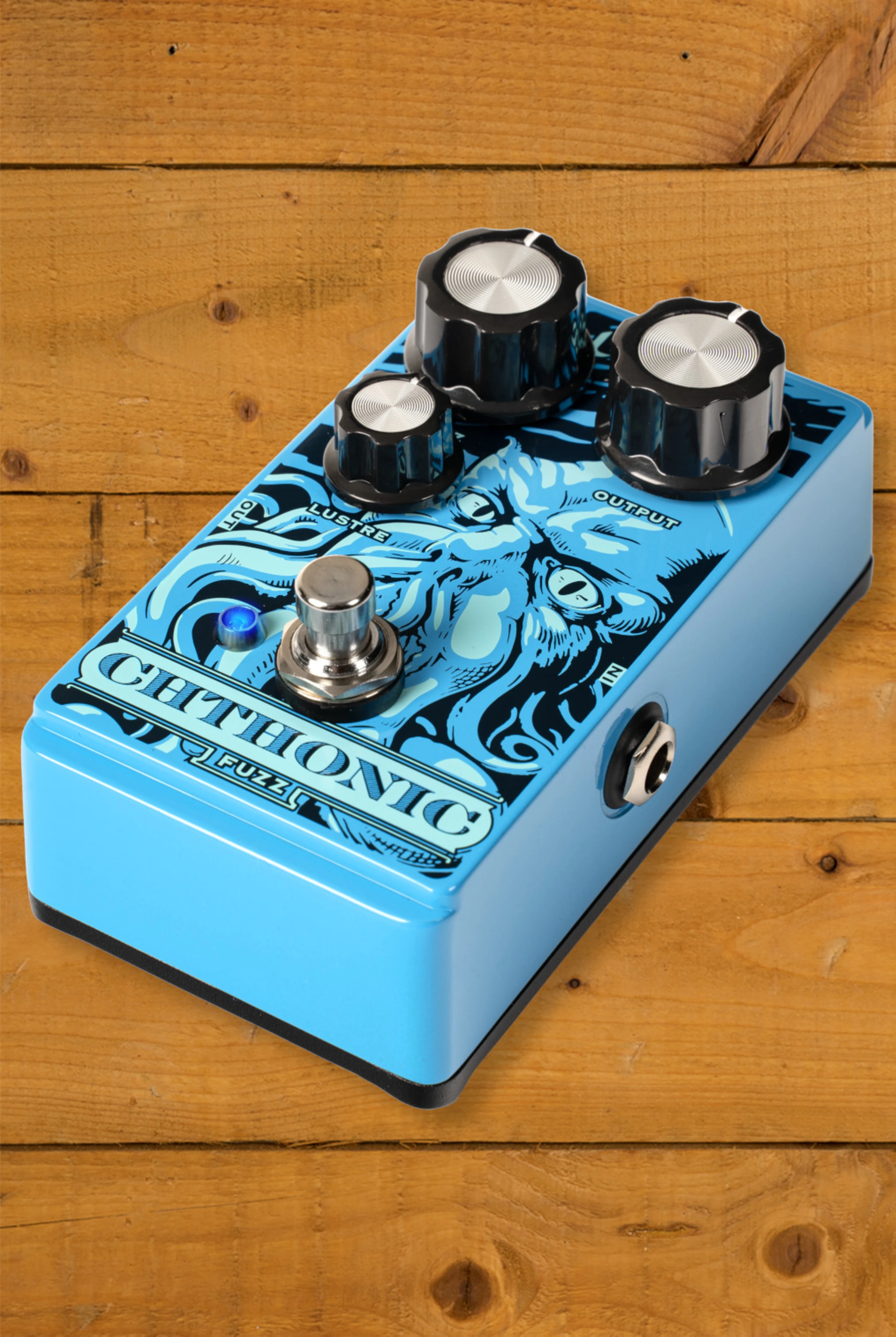 The pedal's captivating Kraken/Cthulhu graphics, crafted by the same artist as the Carcosa Fuzz, give it a distinct personality. Serving as a dark companion to the Carcosa Fuzz, the Chthonic takes its place in the underworld, promising a sonic journey that's both powerful and unique.
