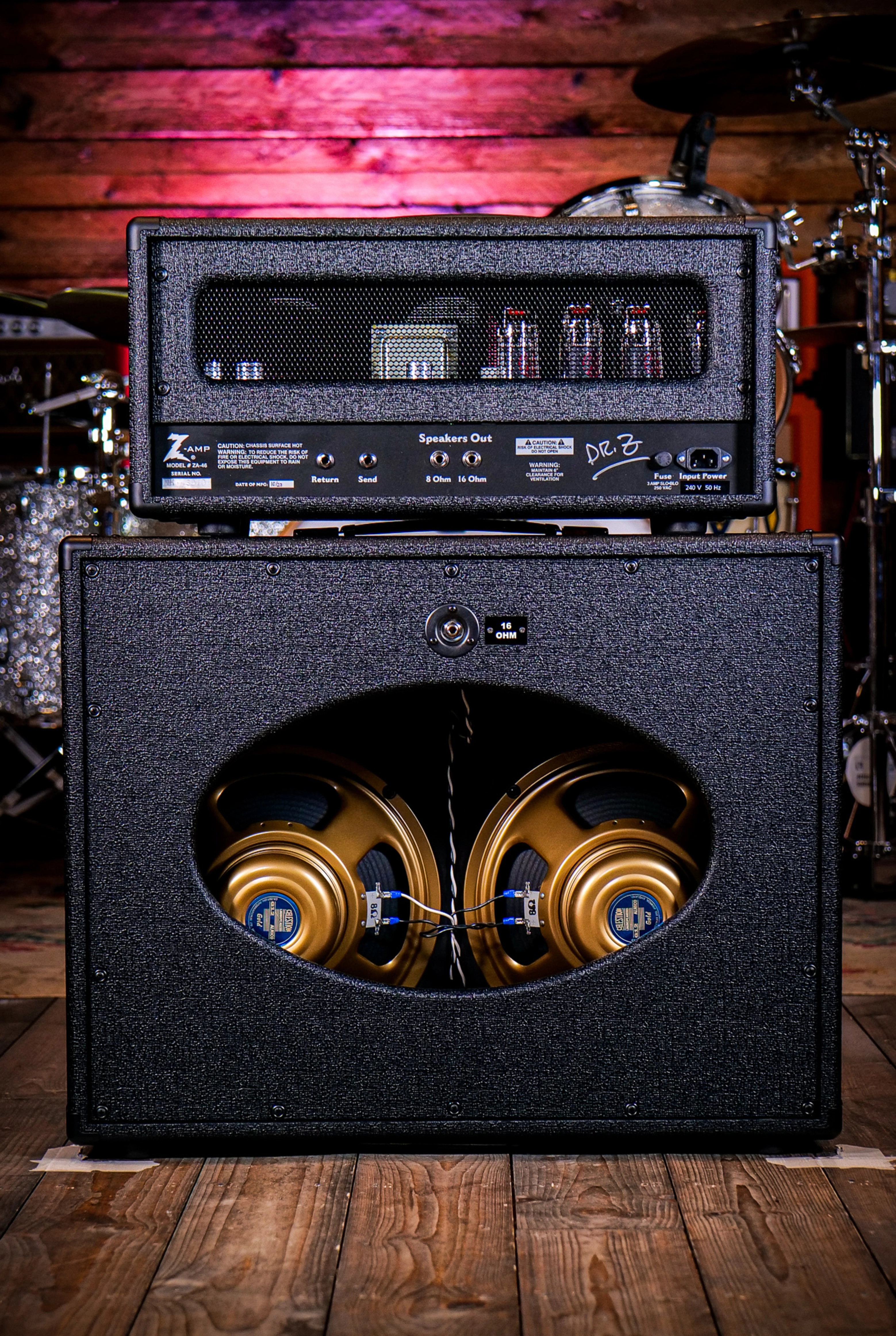 Complete with a custom 2x12 cabinet loaded with Celestion Alnico Gold speakers. This cabinet is the perfect companion for your brand new Dr.Z Z-80!
