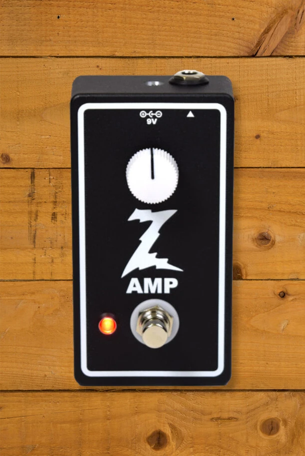 The variable boost footswitch is a single button on/off footswitch with an added knob to control the amount of boost. It has an on/off LED indicator that can be powered by a 9V AC power supply or a 9V battery. The footswitch can be placed on a pedalboard and has a 1/4 TS jack that can be used with any instrument cable.