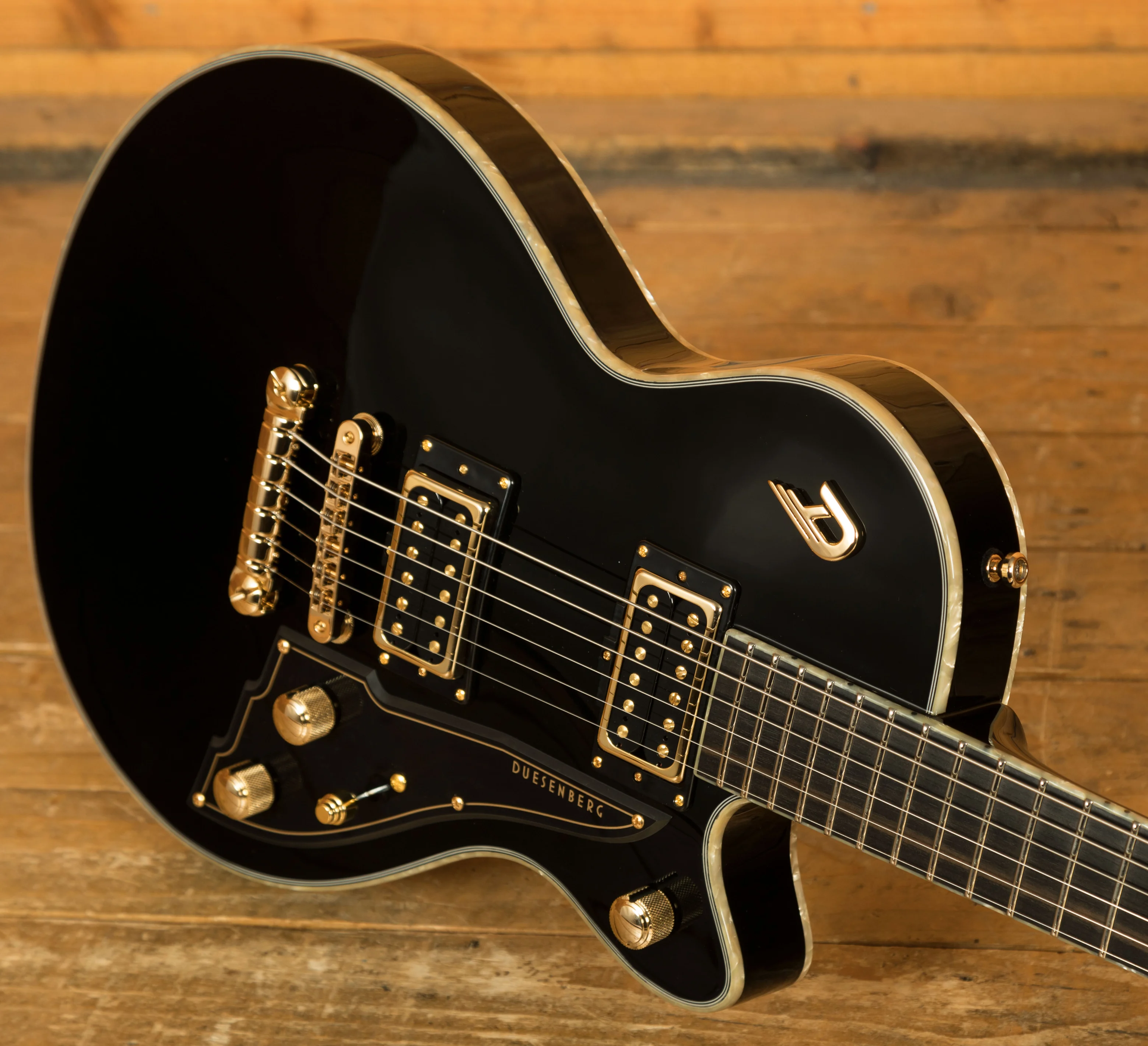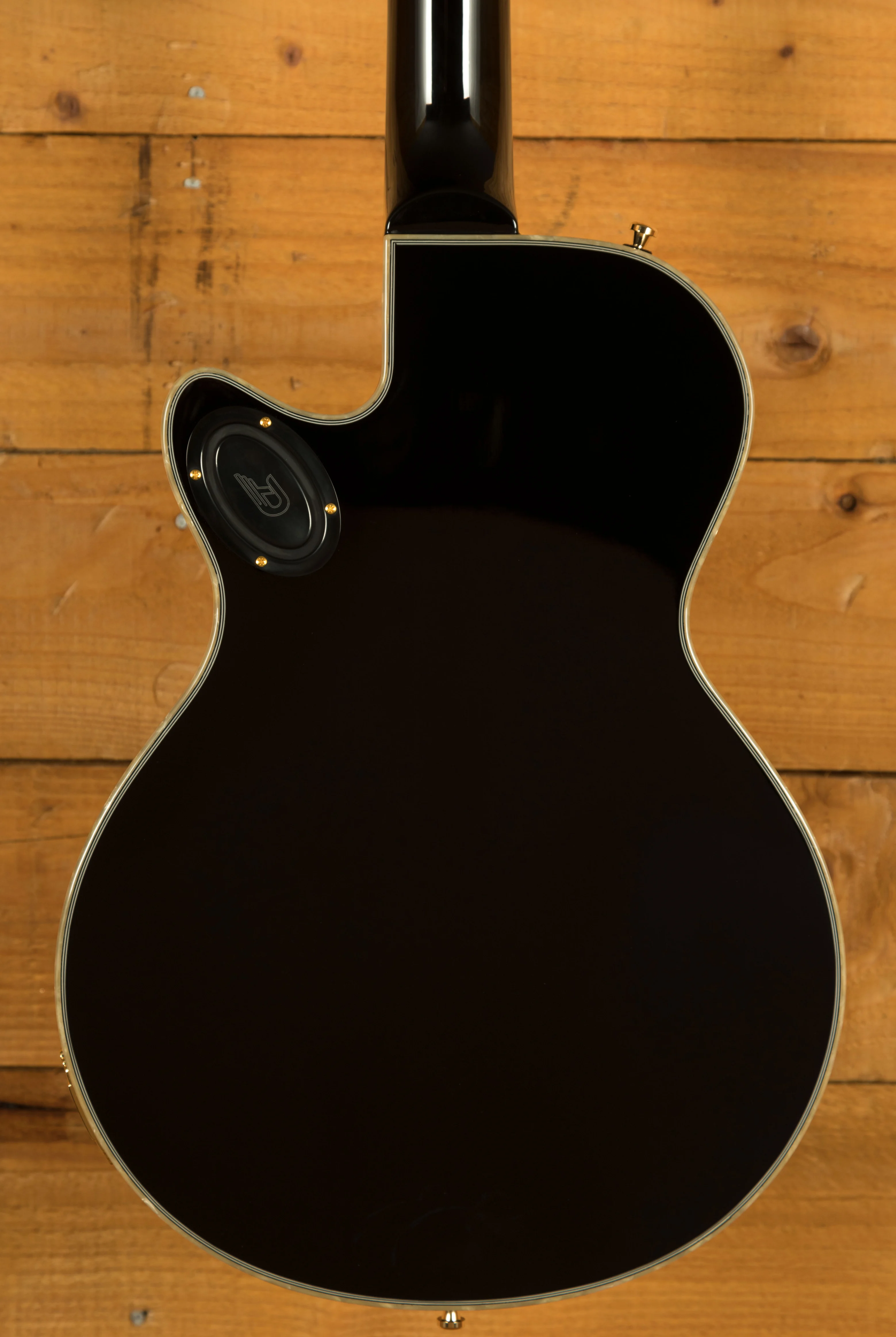 Elegant Black Finish: The gloss Black finish, paired with gold hardware and elegant multi-ply vintage pearl binding, gives the Fantom Series A a classic and sophisticated aesthetic. This combination of colours and materials creates a visually striking instrument that is sure to turn heads.