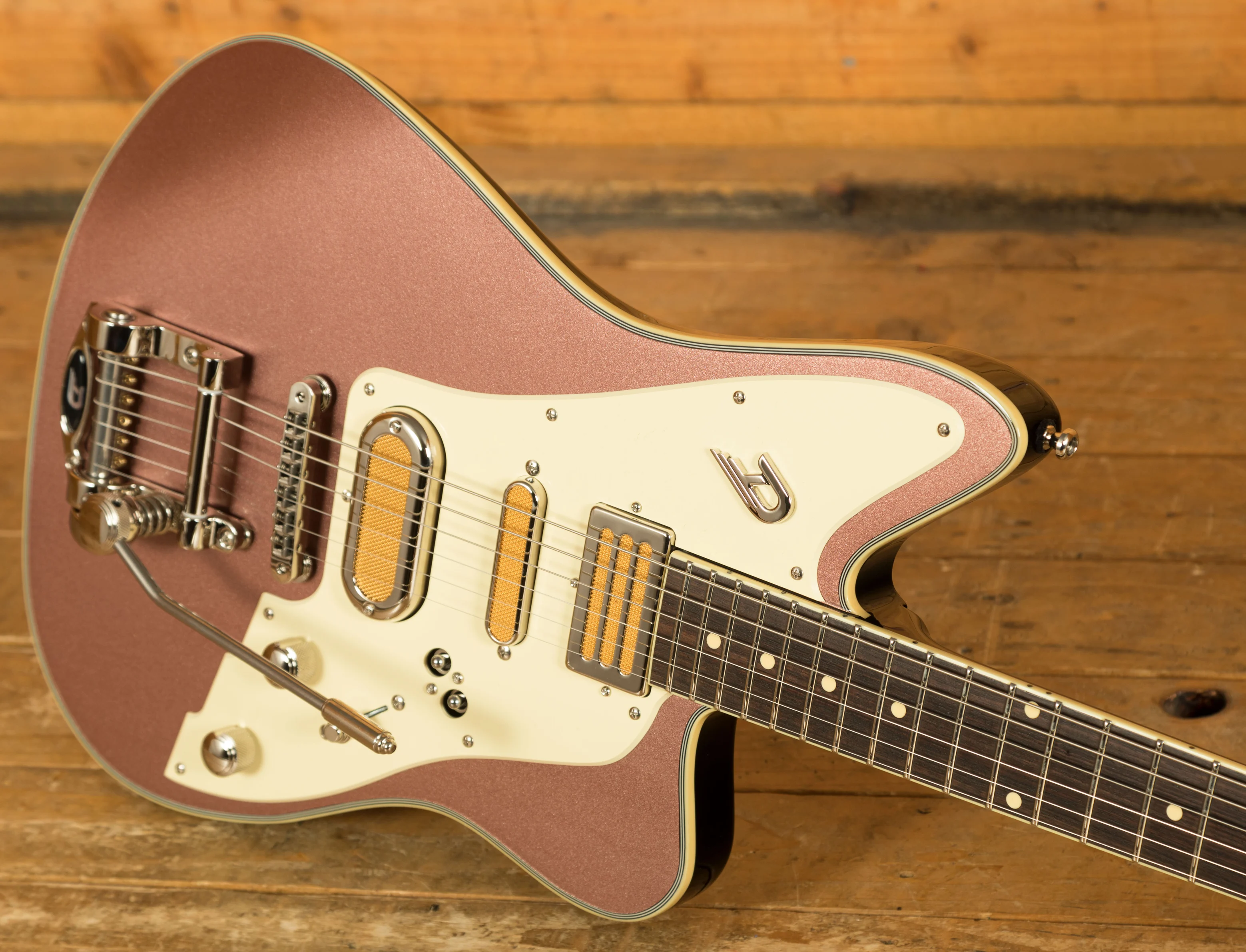 Duesenberg Guitars, renowned for their commitment to quality and innovation, has partnered with the acclaimed musicians The Bros. Landreth to create a truly exceptional instrument: the Joey Landreth Signature Guitar. It's a deep dive into the sonic needs of a master slide player, resulting in a guitar that's as versatile as it is beautiful. Finished in a stunning Catalina Sunset Rose, this instrument is a testament to both Duesenberg's meticulous craftsmanship and Joey Landreth's unique musical voice.