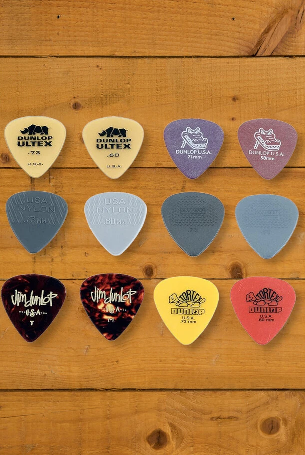 With this Dunlop Pick Variety Pack, players can sample twelve of Dunlop's most popular Nylon Standard, Max-Grip, Celluloid, Gator Grip, Tortex, Ultex light and medium gauge picks in one convenient pack.