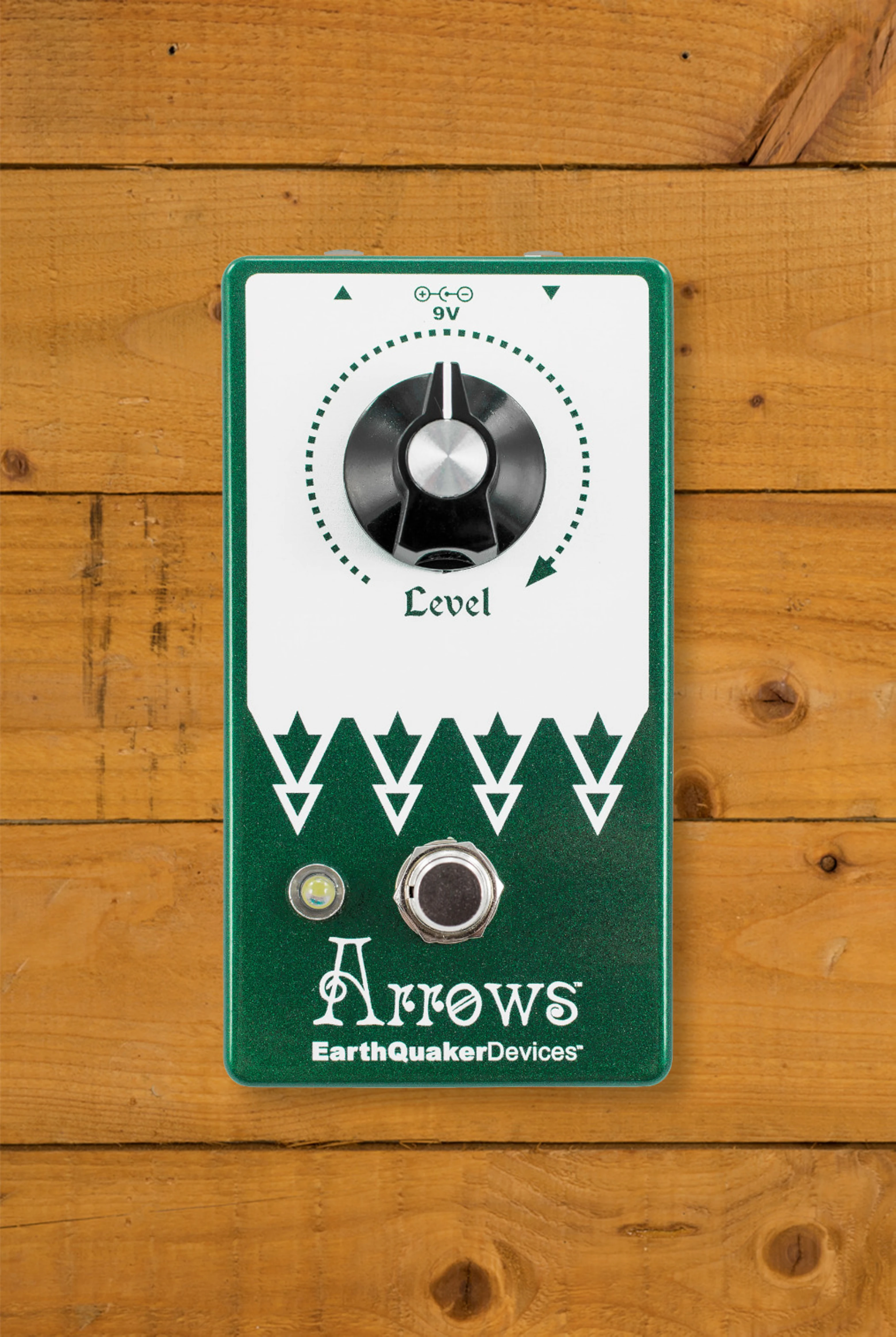 The EarthQuaker Devices Arrows is a simple yet powerful preamp booster pedal designed to enhance your tone. It boosts midrange frequencies, tightens the low end, and adds sparkle to the top end, making it ideal for brightening neck pickups or pushing dirt pedals into rich, harmonic sustain. Compact and straightforward, this pedal is perfect for guitarists seeking a reliable tone-shaping tool.