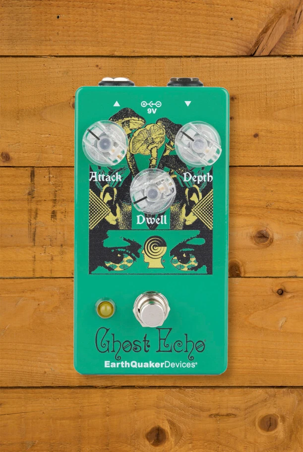 The EarthQuaker Devices x Brain Dead Ghost Echo is a limited-edition reverb pedal that combines the lush, vintage-voiced reverb of the Ghost Echo with Brain Dead's bold, psychedelic artwork. Featuring intuitive controls for Attack, Depth, and Dwell, this pedal delivers everything from subtle ambience to cavernous echoes. Perfect for guitarists who value both exceptional sound and eye-catching design.