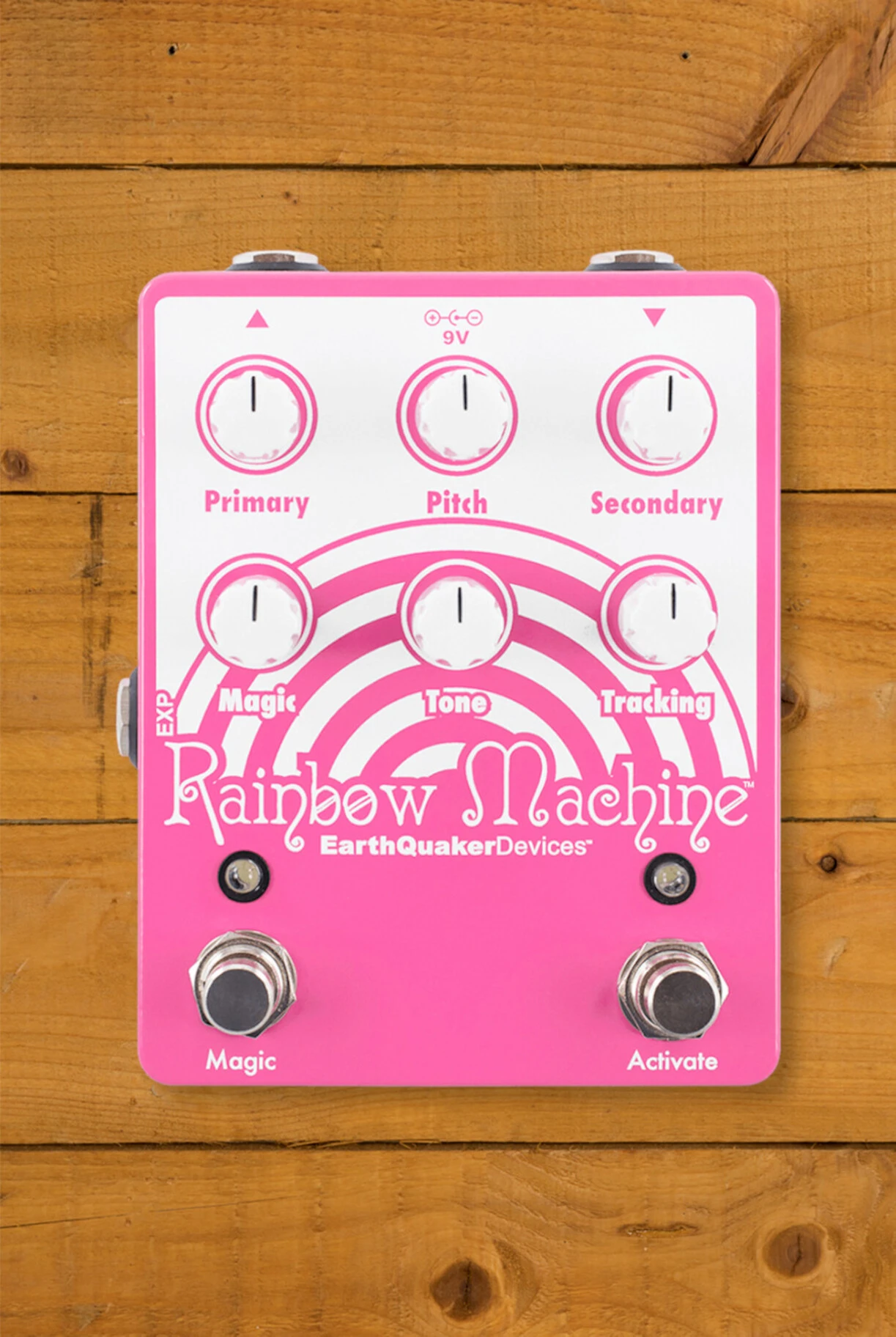 The EarthQuaker Devices Rainbow Machine is a polyphonic pitch-shifting pedal designed for adventurous musicians seeking unconventional and otherworldly sounds. With its unique Magic control, it adds unpredictable modulation and sonic chaos, making it perfect for creating experimental textures. Whether you're crafting shimmering harmonies or diving into cosmic soundscapes, this pedal is a playground for sonic exploration.