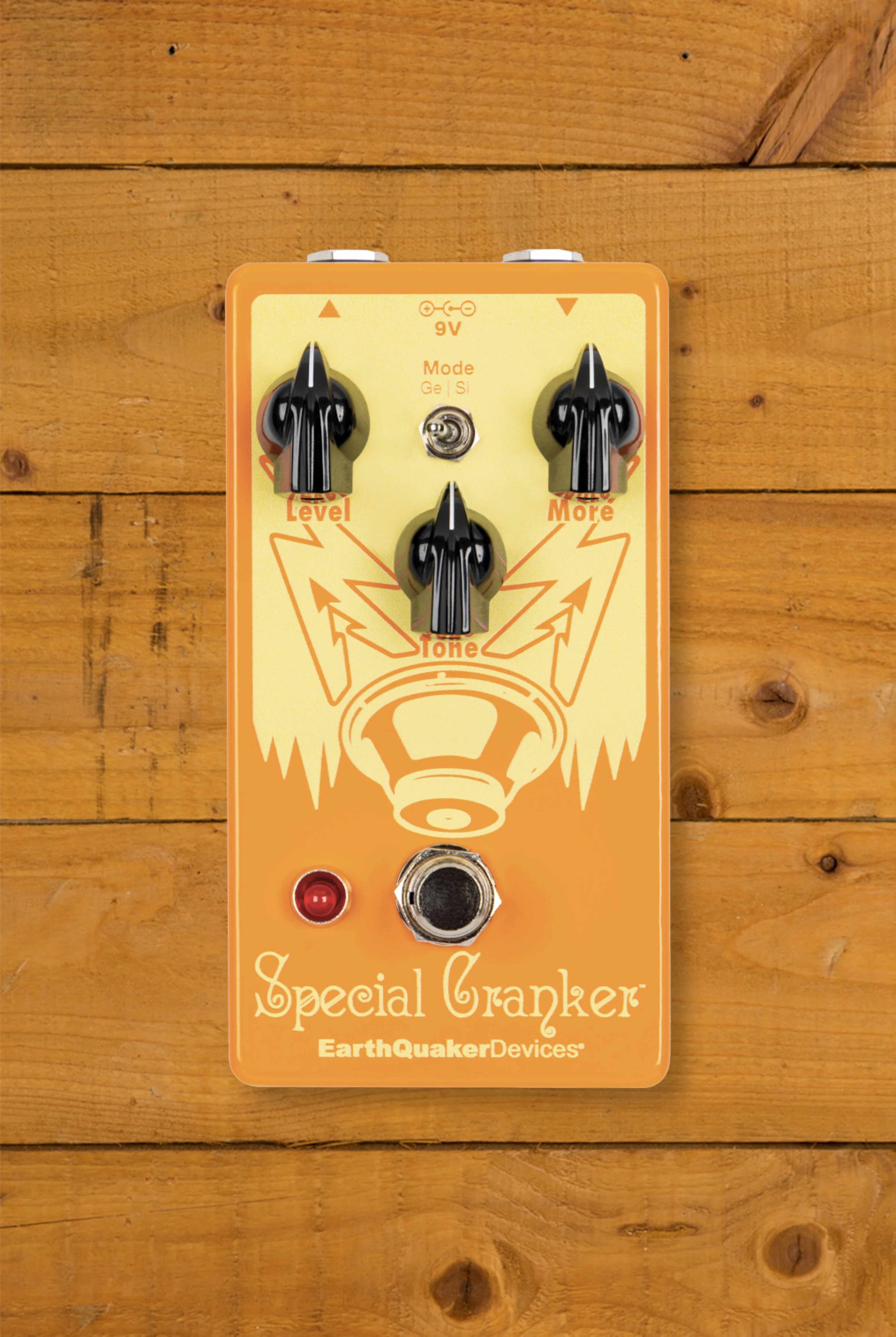 The EarthQuaker Devices Special Cranker is an all-discrete analog distortion enhancement pedal that adds grit and boost to your signal without compromising your amp's natural tone. With silicon and germanium diode options, it offers versatile clipping modes for everything from bright, edgy tones to warm, smooth overdrive. Perfect for guitarists seeking dynamic, touch-sensitive gain.