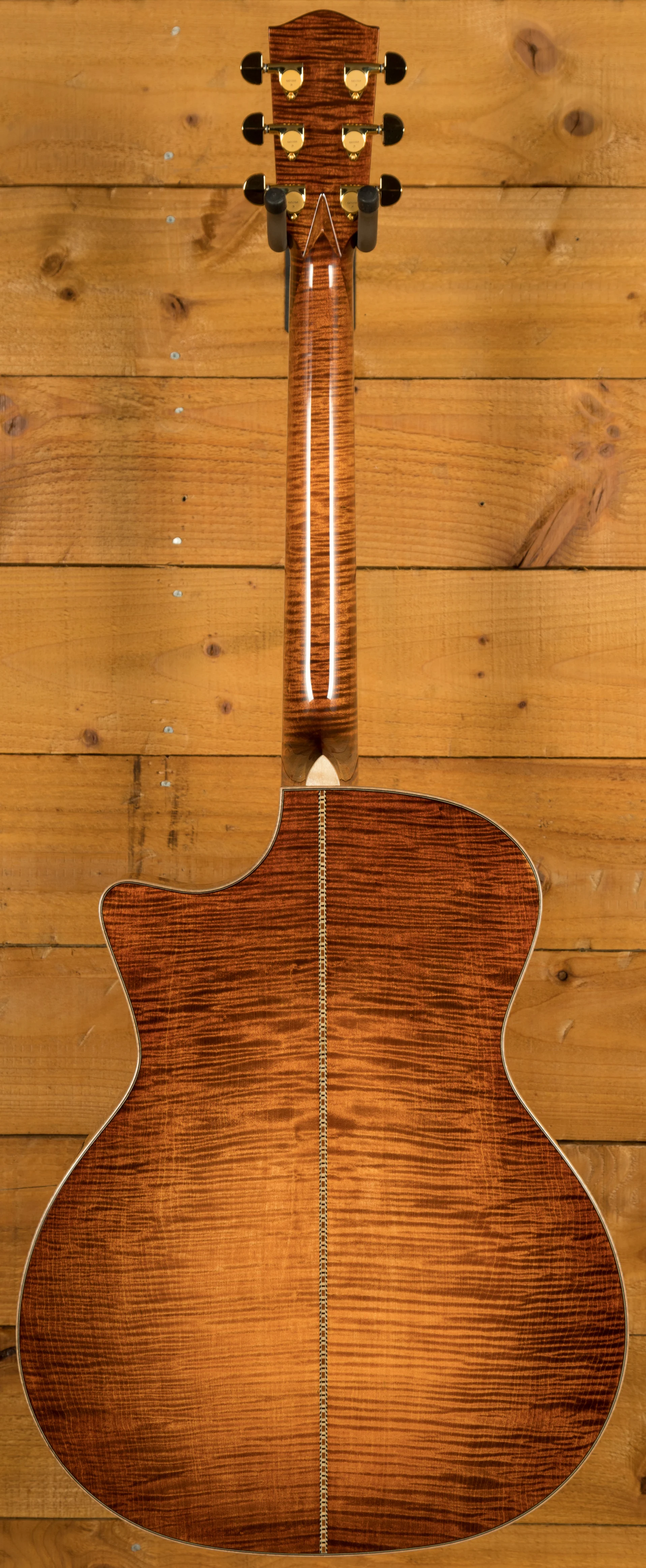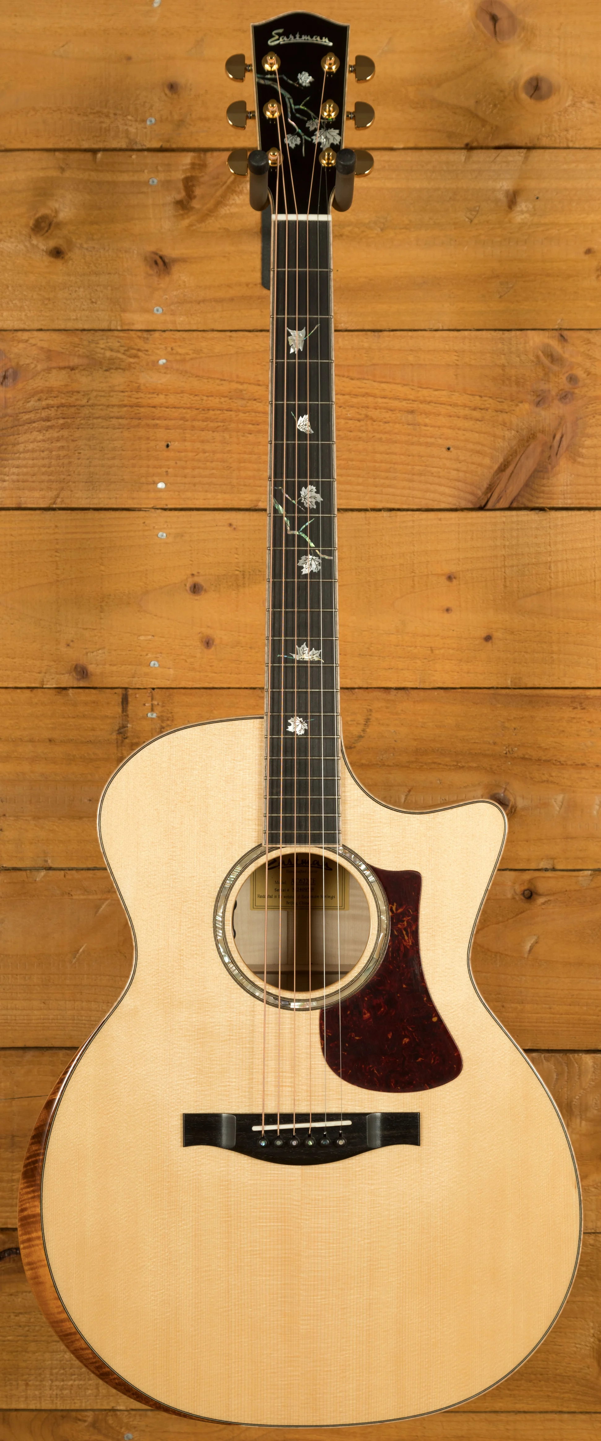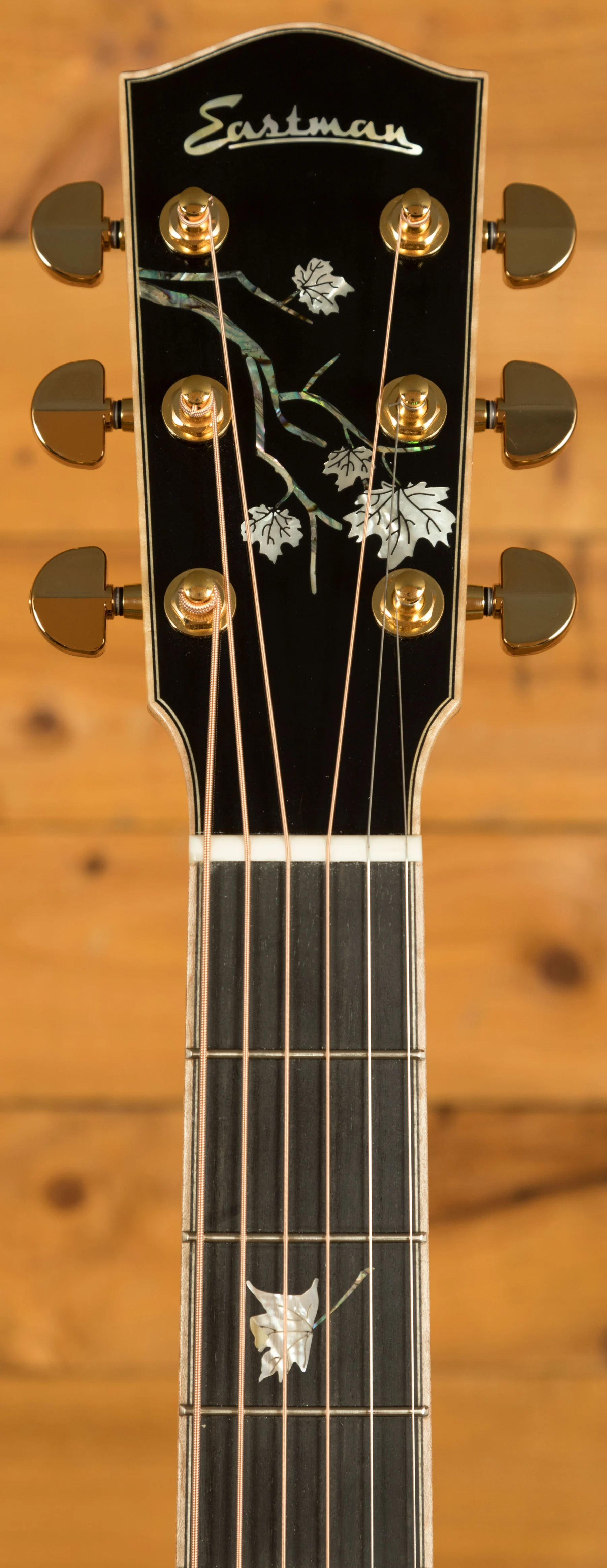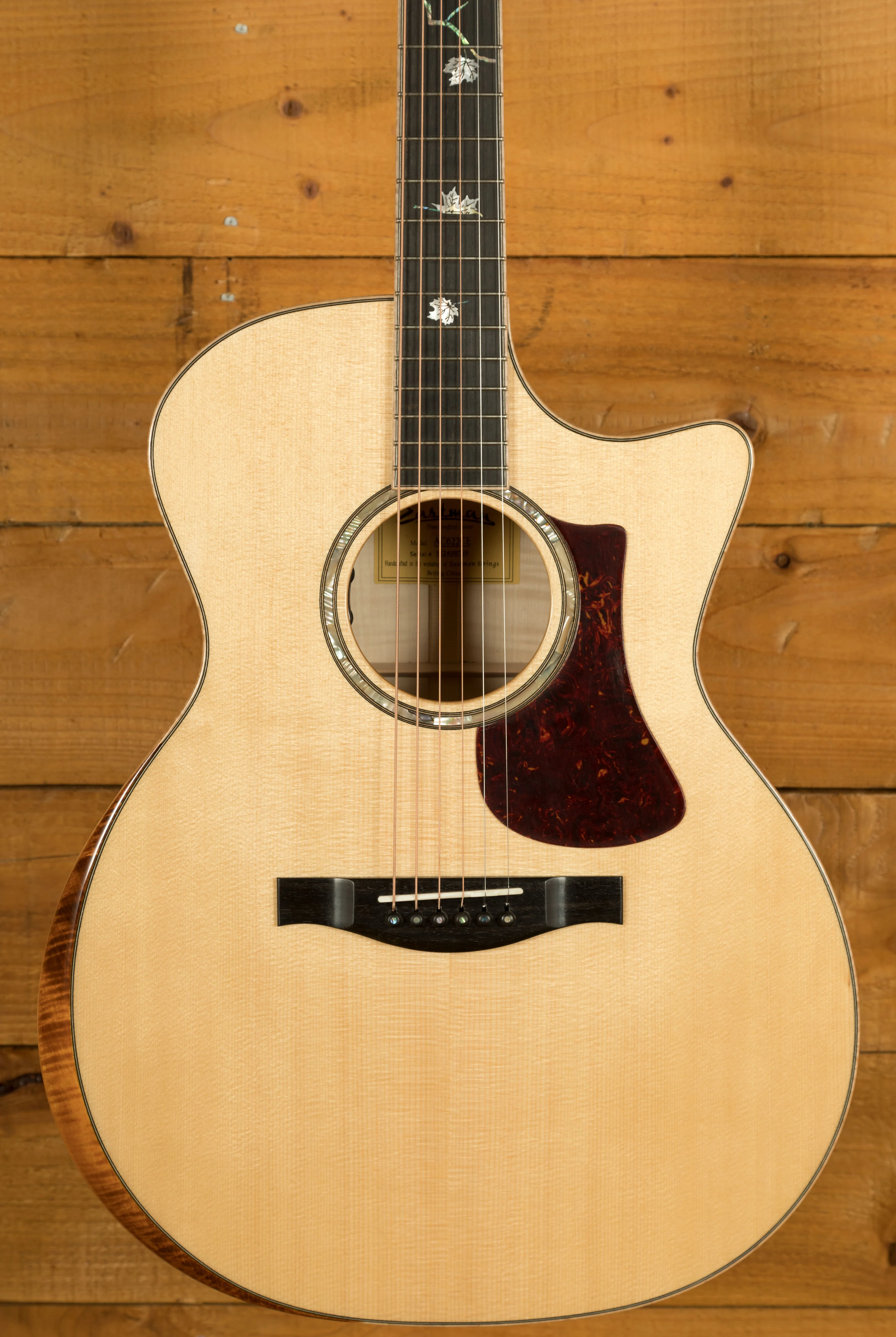 Delve into the captivating world of exquisite details with the AC622CE. The Abalone rosette, abalone maple leaf inlays, and black side dots showcase the instrument's artistry and elegance. The figured Maple binding, paired with a pearl headstock logo, adds a touch of sophistication to its overall aesthetics. The gold hardware and tortoise shell pickguard exude a sense of timeless style, while the ebony bridge and bone saddle with a 2 5/32" spacing ensure optimal string alignment and resonance.