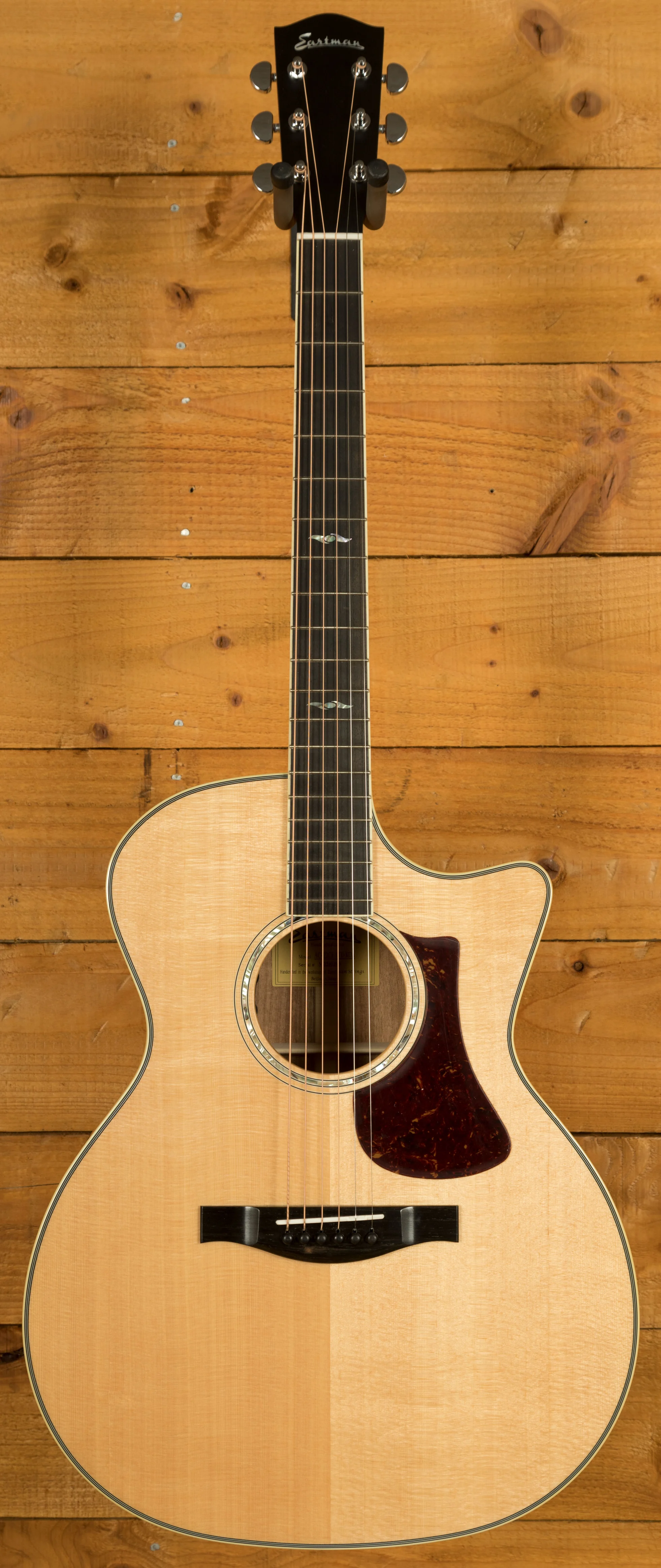 The Eastman AC422CE Limited Edition electro-acoustic guitar blends premium tonewoods with meticulous construction to deliver an instrument of exceptional tone, playability, and visual appeal. This limited edition model stands out with its stunning solid Koa back and sides, paired with a solid Sitka Spruce top. This tonewood combination produces a rich, resonant tone with a warm low-end, clear midrange, and sparkling highs. Koa is known for its beautiful figuring and tonal complexity, which only improves with age. The Sitka Spruce top adds brightness and projection, making this guitar ideal for both fingerstyle and strumming.