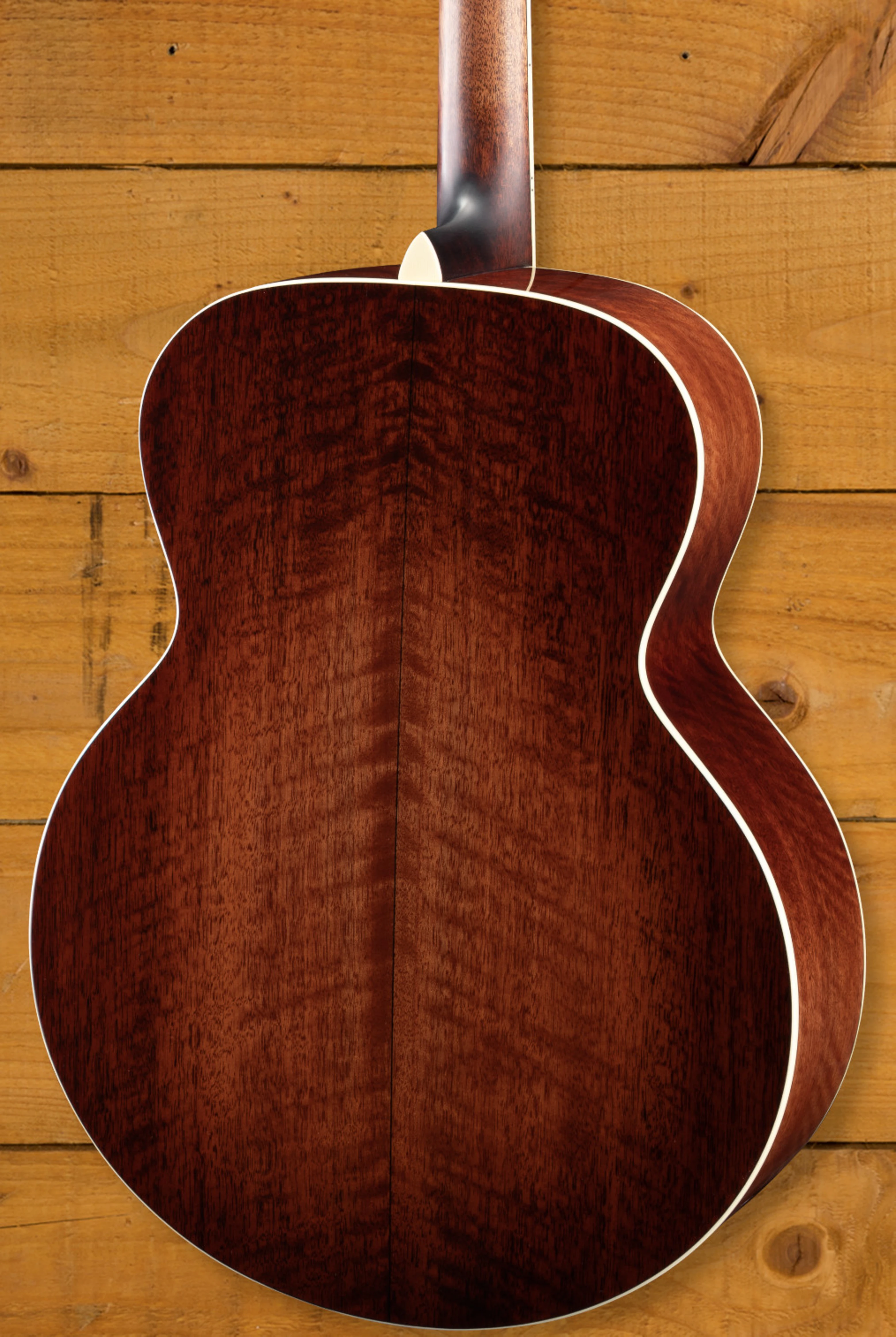 Jumbo guitars have always had their place in music thanks to their exceptional projection and balanced, yet booming, bass response. Eastman are now offering this stripped back acoustic with a more understated look that feels rustic and authentic whilst focusing on delivering exceptional tone. The solid Sitka Spruce top with hand-carved scalloped X bracing is paired with solid Mahogany back and sides for a sound that gets better and better as the wood ages. The Mahogany neck is a joy to play with a Traditional Even "C" profile and 12" radius Ebony fretboard ensuring comfort. The AC330E isn't completely devoid of aesthetic touches though and features some beautiful pearl huricane inlays, as well as a pearl-inlayed Ebony bridge. Thanks to the LR Baggs Element VTC, you can take this guitar to larger stages with ease.